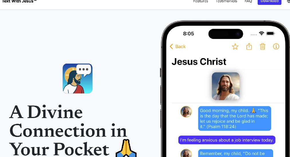 Ίσως αναπόφευκτα, οι τεχνολόγοι της Silicon Valley αναλαμβάνουν τα ηνία. Η εφαρμογή «Text with Jesus», που έχει δημιουργηθεί με το μοντέλο ChatGPT της OpenAI, επιτρέπει στους χρήστες να υποβάλλουν προσωπικές και θεολογικές ερωτήσεις. Αντιπροσωπευόμενος από ένα avatar με καλοκουρεμένη γένια hipster, ο Ιησούς απαντά με φιλικές προτροπές και αποσπάσματα από τις Γραφές.