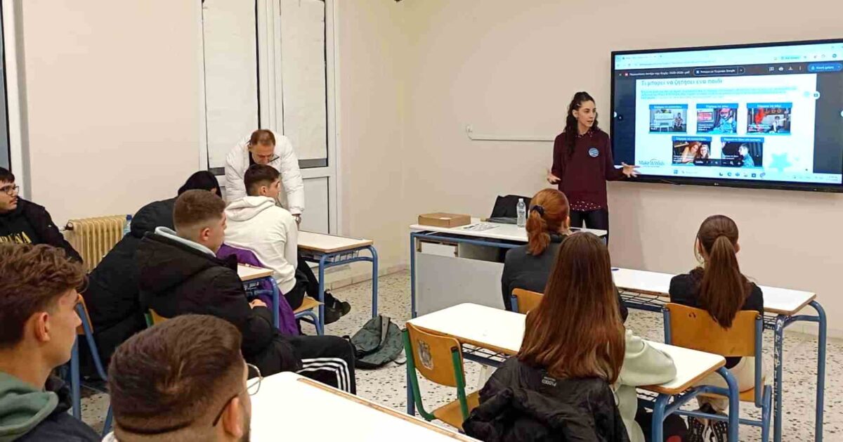 Η εθελόντρια του Make-A-Wish Λάρισας, Βίκυ Διαμαντή έκανε μια εξαιρετική παρουσίαση για το έργο του Οργανισμού και στη συνέχεια συνομίλησε με μαθητές του ΕΠΑΛ Τυρνάβου, οι οποίοι είχαν την ευκαιρία να γνωρίσουν την αξία της προσφοράς και της αλληλεγγύης και να συμμετάσχουν ενεργά σε μια προσπάθεια, που φέρνει χαμόγελα κι ελπίδα σε παιδιά που το έχουν ανάγκη.