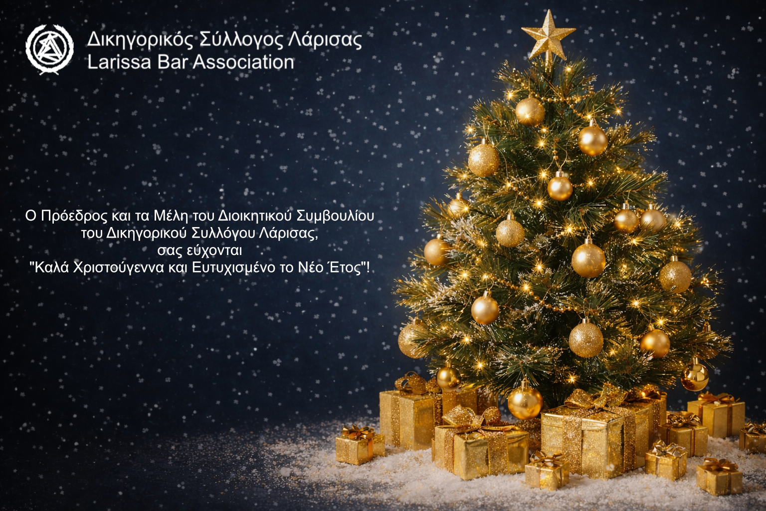 Δικηγορικός Σύλλογος Λάρισας: «Καλά Χριστούγεννα και Ευτυχισμένο το Νέο Έτος»