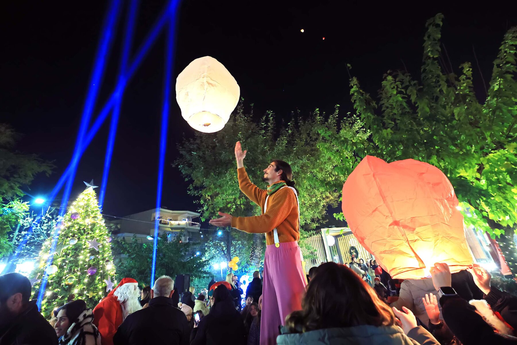 Η εκδήλωση περιλάμβανε το εντυπωσιακό άναμμα του χριστουγεννιάτικου δέντρου, ενώ τα φαναράκια που αφέθηκαν στον ουρανό δημιούργησαν ένα μοναδικό σκηνικό. Ο Άγιος Βασίλης με τα ξωτικά του υποδέχθηκαν τα παιδιά, χαρίζοντάς τους χαμόγελα και αξέχαστες στιγμές.