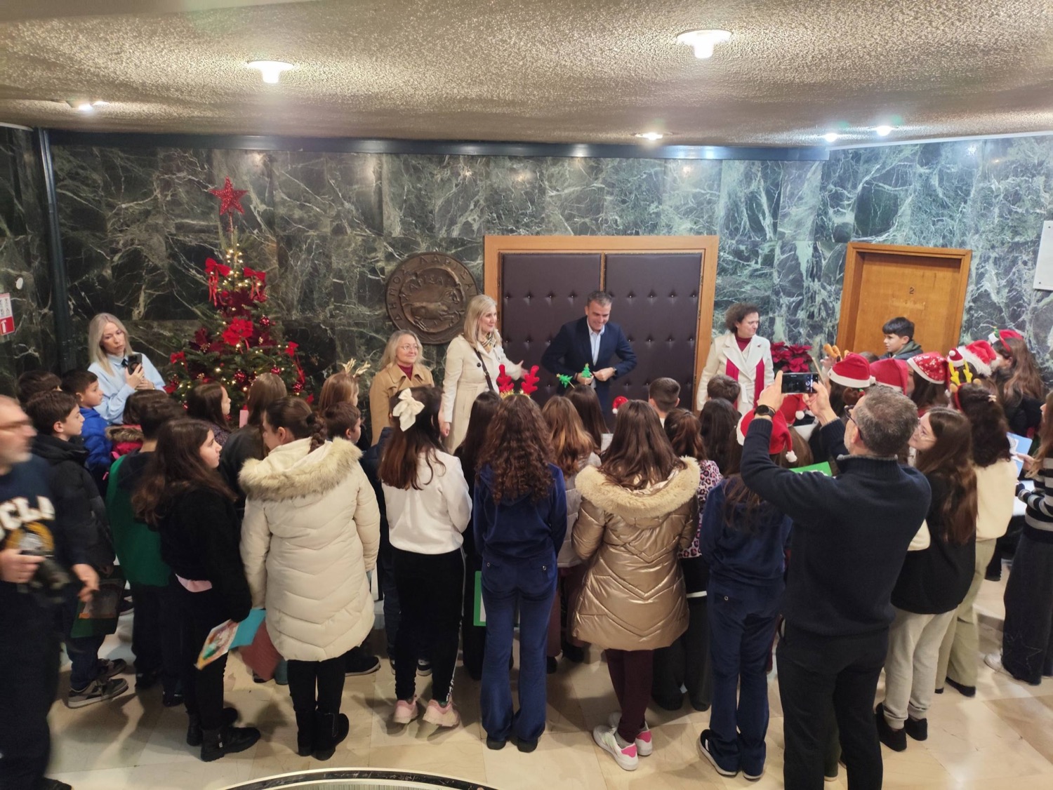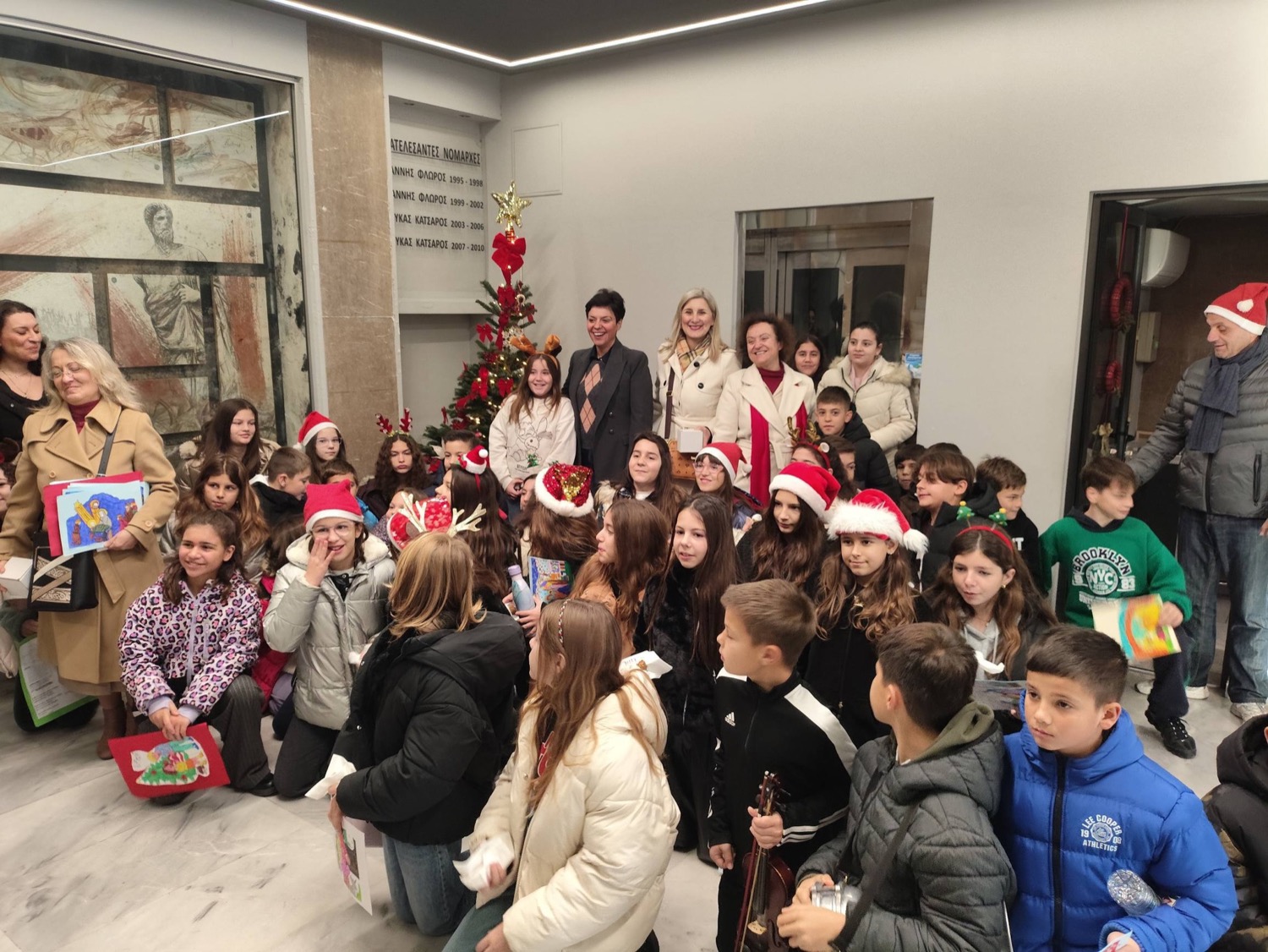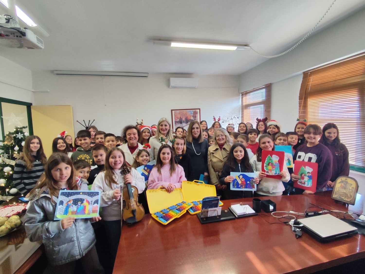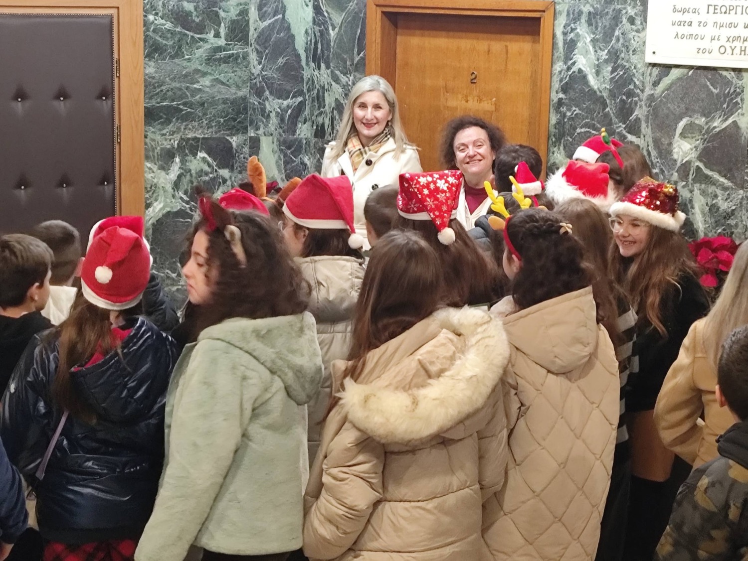 Τα παιδιά είχαν την τιμή να πουν τα κάλαντα στον Δήμαρχο Λαρισαίων κ. Αθανάσιο Μαμάκο, στην Αντιπεριφερειάρχη Θεσσαλίας κα Μαρία Γαλλιού και στη Διευθύντρια Πρωτοβάθμιας Εκπαίδευσης Λάρισας κα Αικατερίνη Καραγιώργου, οι οποίοι τα υποδέχτηκαν με ζεστασιά και συγκίνηση, τα συνεχάρησαν, τους πρόσφεραν κεράσματα και μοιράστηκαν μαζί τους ευχές για καλές γιορτές και ένα νέο έτος γεμάτο ελπίδα, χαρά και δημιουργικότητα.