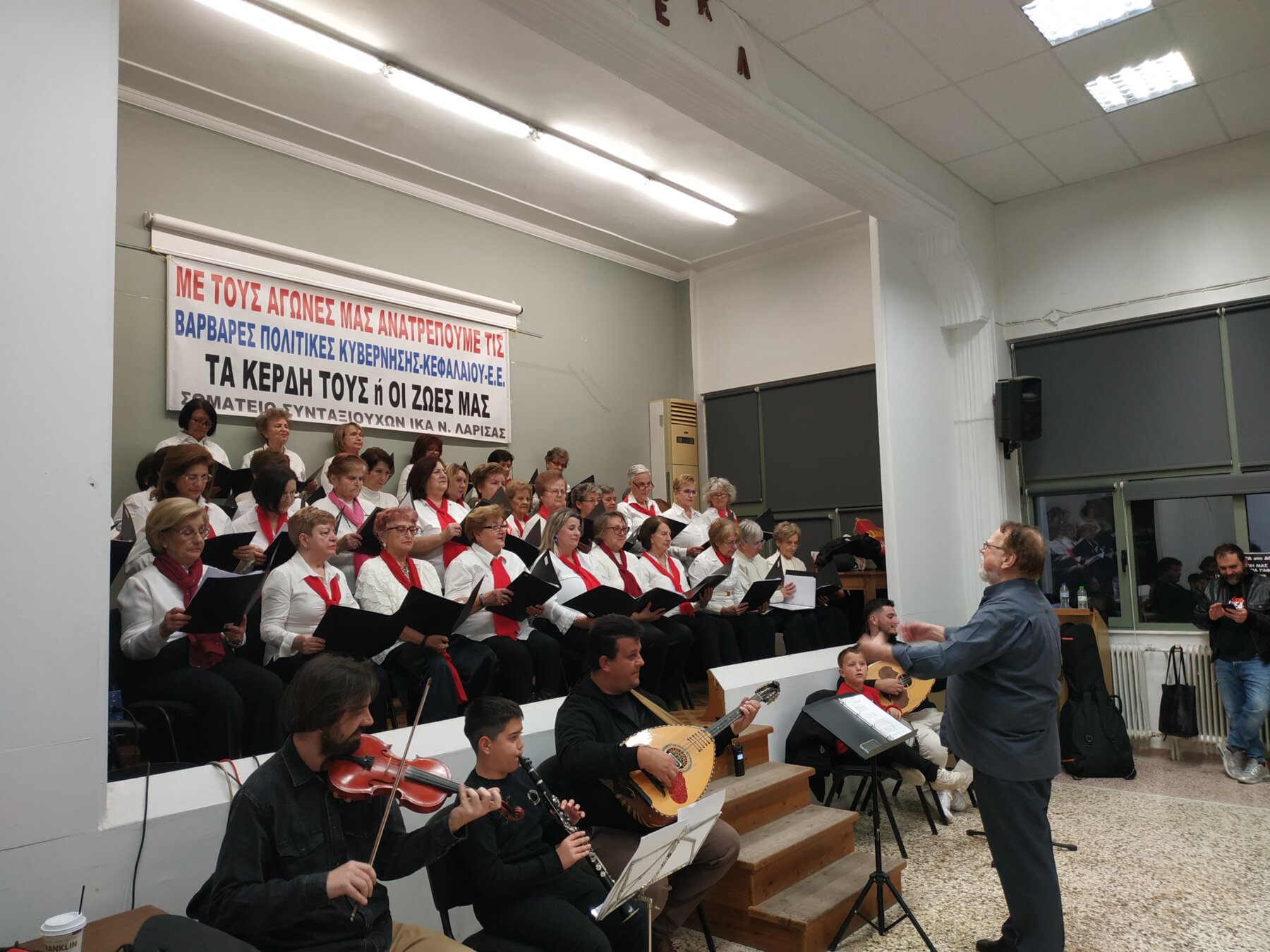 Η Διοίκηση του Σωματείου Συνταξιούχων ΙΚΑ Ν. Λάρισας τους ευχαριστεί όλους, και ο στόχος είναι να μεγαλώσει το ρεπερτόριο της χορωδίας, γι’αυτό χρειάζεται να συμμετέχουν και ανδρικές φωνές και καλεί όσους ενδιαφέρονται να δηλώσουν συμμετοχή.
