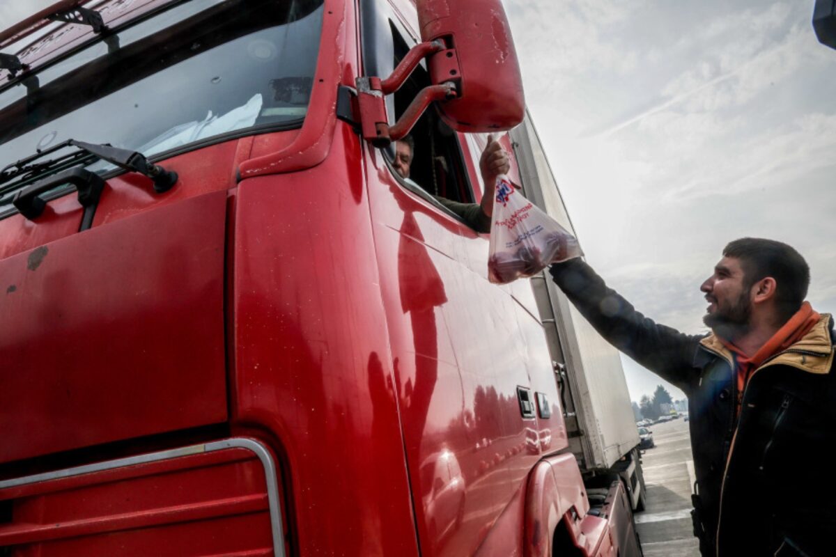 Μάλιστα, στα διόδια Μακρυχωρίου μοίρασαν και μήλα.