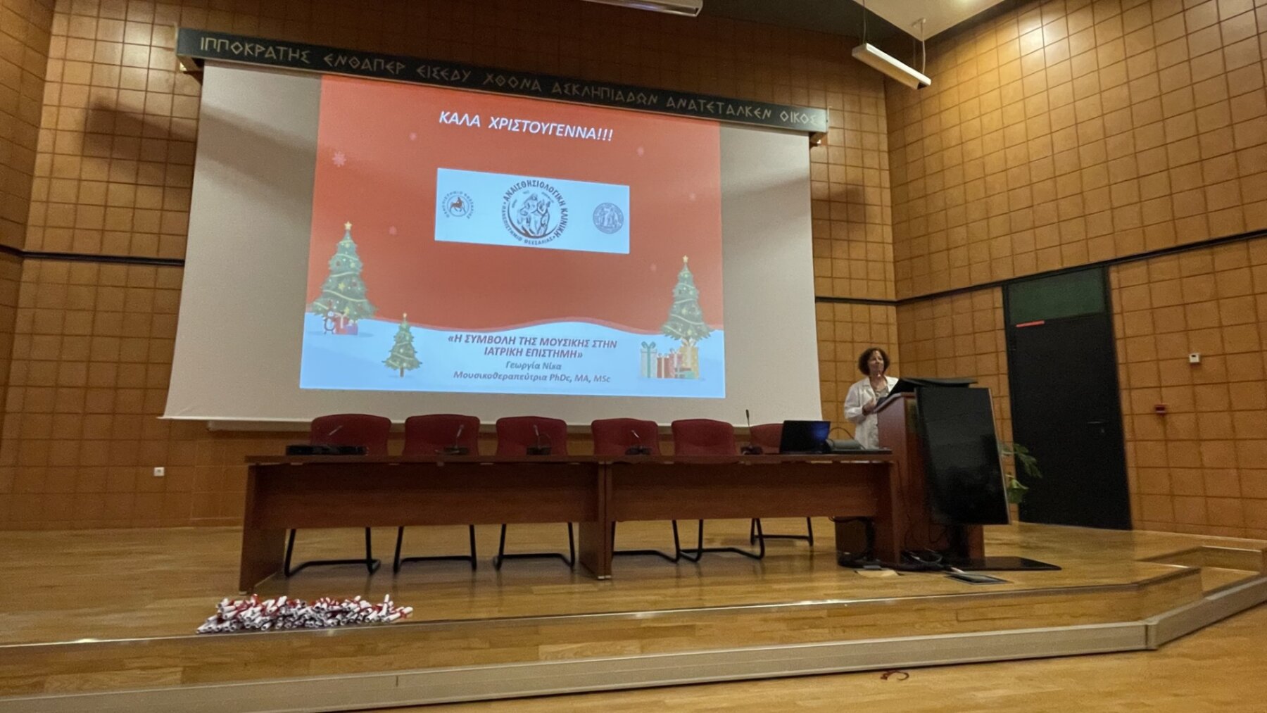 Τα Σύνολα «Μιούζικαλ και Μουσικής Κινηματογράφου» & «Παραδοσιακής Ορχήστρας» του Μουσικού Σχολείου Λάρισας είχαν την ιδιαίτερη τιμή να συμμετάσχουν, κατόπιν πρόσκλησης, στο βιωματικό σεμινάριο Μουσικοθεραπείας με τίτλο «Η Μουσική στην Ιατρική», το οποίο πραγματοποιήθηκε στις 17 Δεκεμβρίου στο Αμφιθέατρο «Ιπποκράτης» του Τμήματος Ιατρικής της Σχολής Επιστημών Υγείας του Πανεπιστημίου Θεσσαλίας (‘Βιόπολις’).