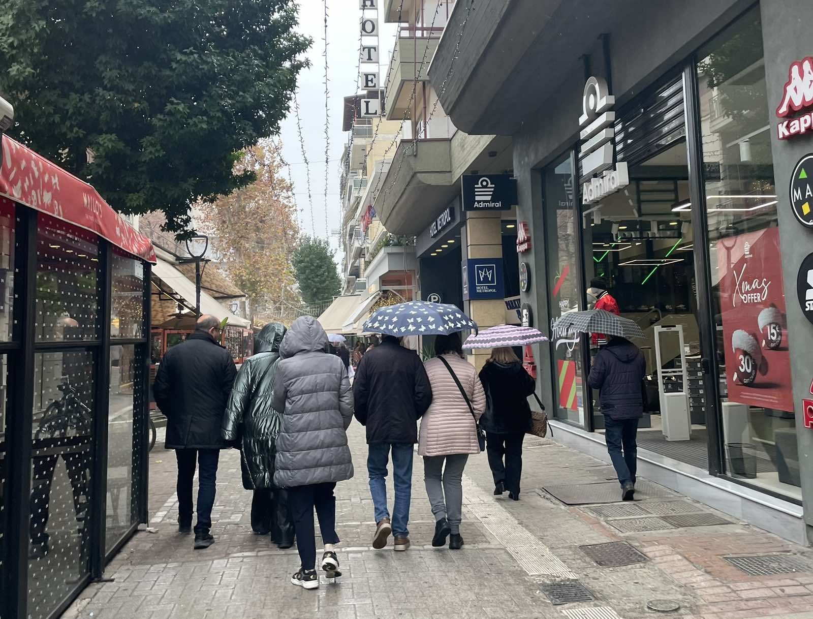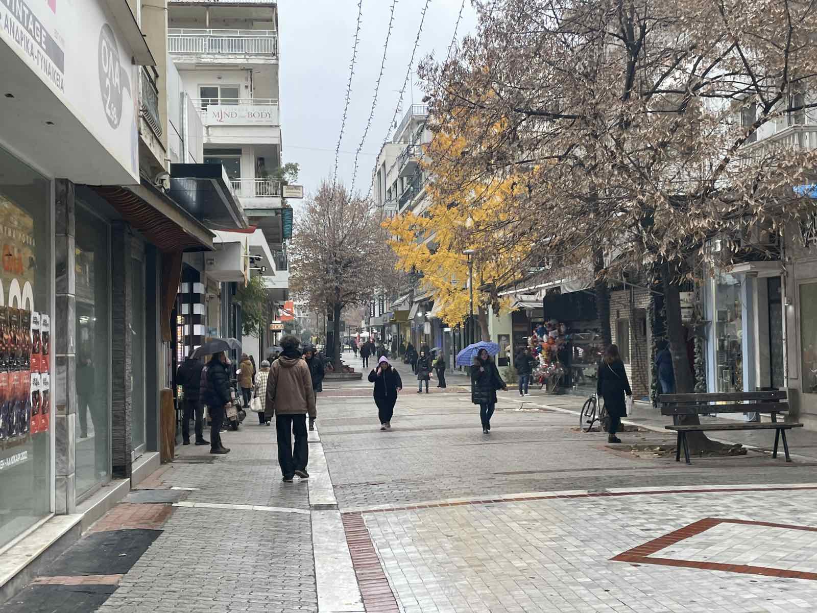 Περιορισμένη κίνηση στο κέντρο της Λάρισας με ανοιχτά τα καταστήματα – Χάλασε τα σχέδια στους Λαρισαίους ο μουντός καιρός (φωτο)