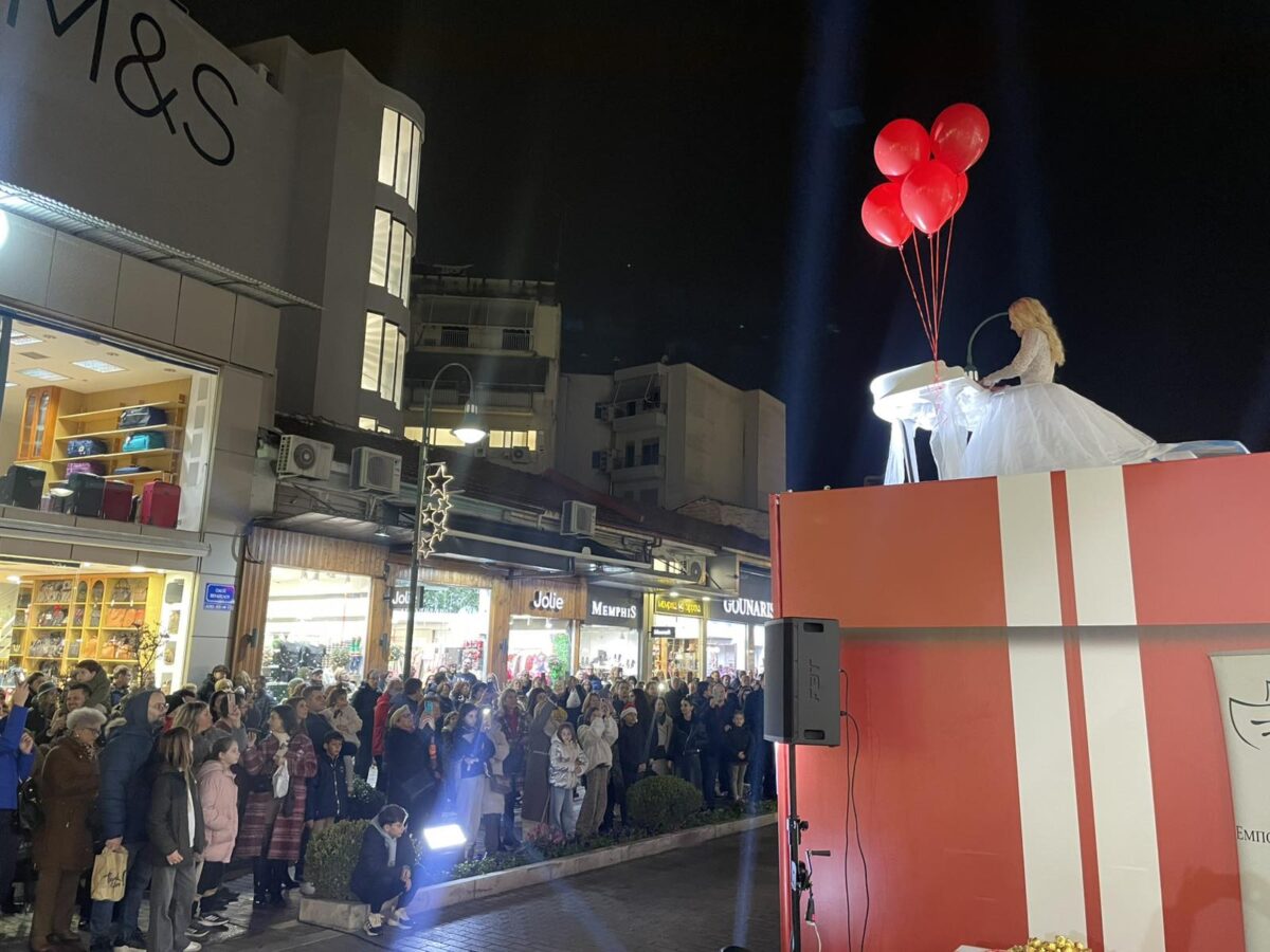 Μια εντυπωσιακή χριστουγεννιάτικη βραδιά, διαφορετική από τις υπόλοιπες, απόλαυσαν απόψε το βράδυ της Δευτέρας οι Λαρισαίοι στον πεζόδρομο της Βενιζέλου, με τη διακεκριμένη και γνωστή στο πανελλήνιο, «Ιπτάμενη πιανίστρια» Έλενα Ξυδιά να πλημμυρίζει με υπέροχες και διαχρονικές μελωδίες την αγορά, συνοδευόμενη από τη νεανική χορωδία του Σύγχρονου Ωδείου Λάρισας.