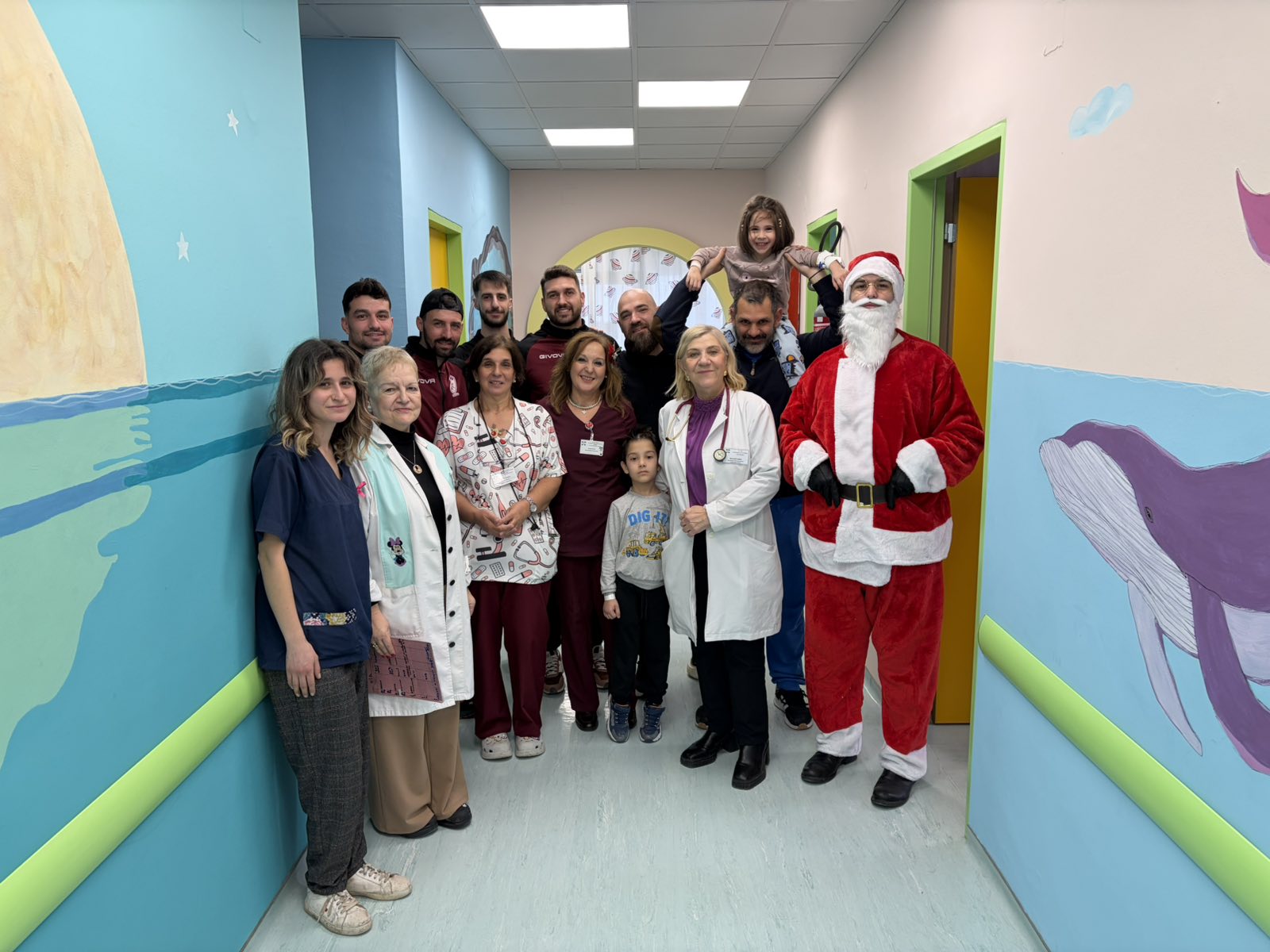 Τα μέλη της ομάδας μοίρασαν χριστουγεννιάτικα δώρα στα παιδάκια, στέλνοντας ένα μήνυμα ελπίδας, δύναμης και συμπαράστασης τόσο στους μικρούς ασθενείς όσο και στις οικογένειές τους.
