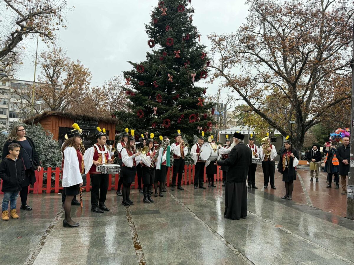 Οι μουσικοί, μέσα σε γιορτινή διάθεση, κυκλοφόρησαν στο κέντρο της πόλης, χαρίζοντας χαμόγελα και μεταφέροντας το εορταστικό κλίμα σε κατοίκους και επισκέπτες.