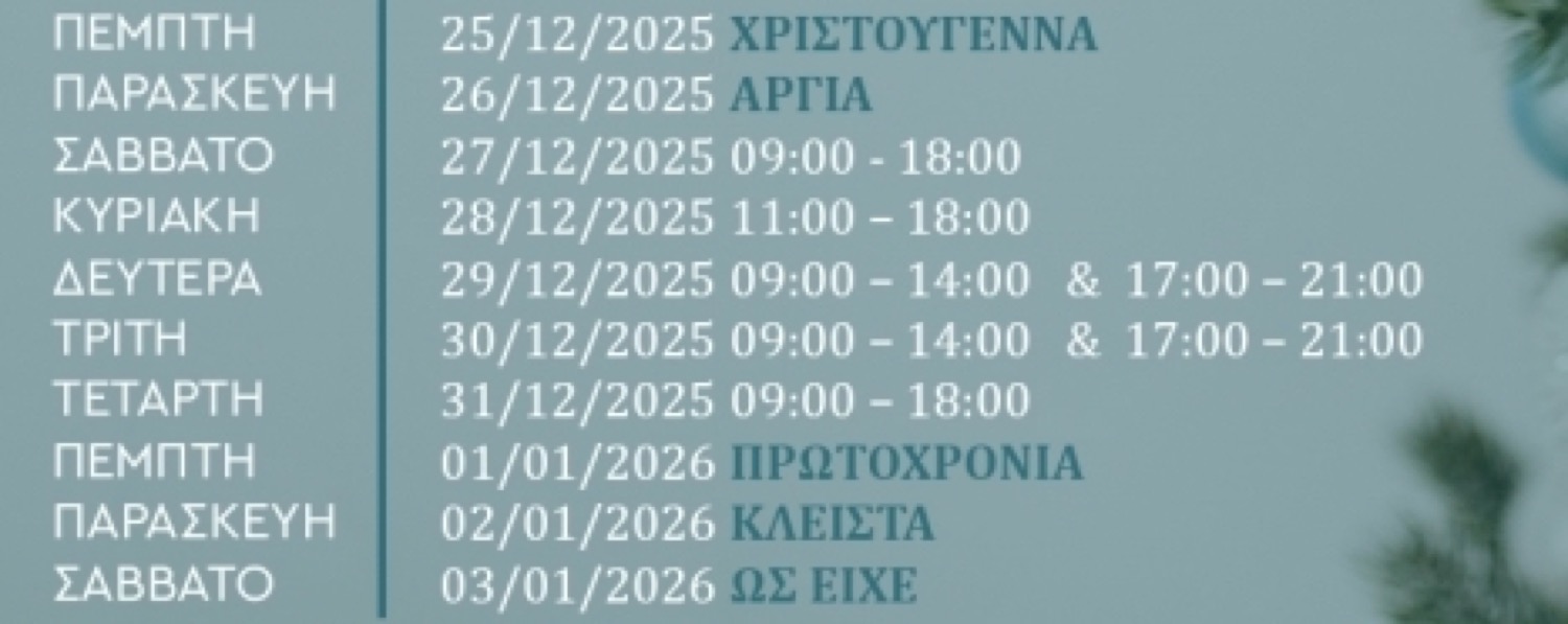 Δείτε πως θα λειτουργούν τα καταστήματα μέχρι τις 03/01:
