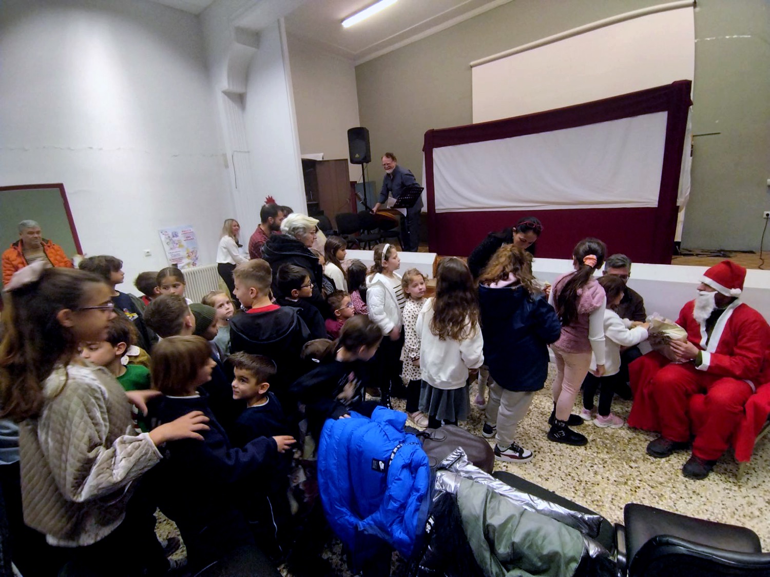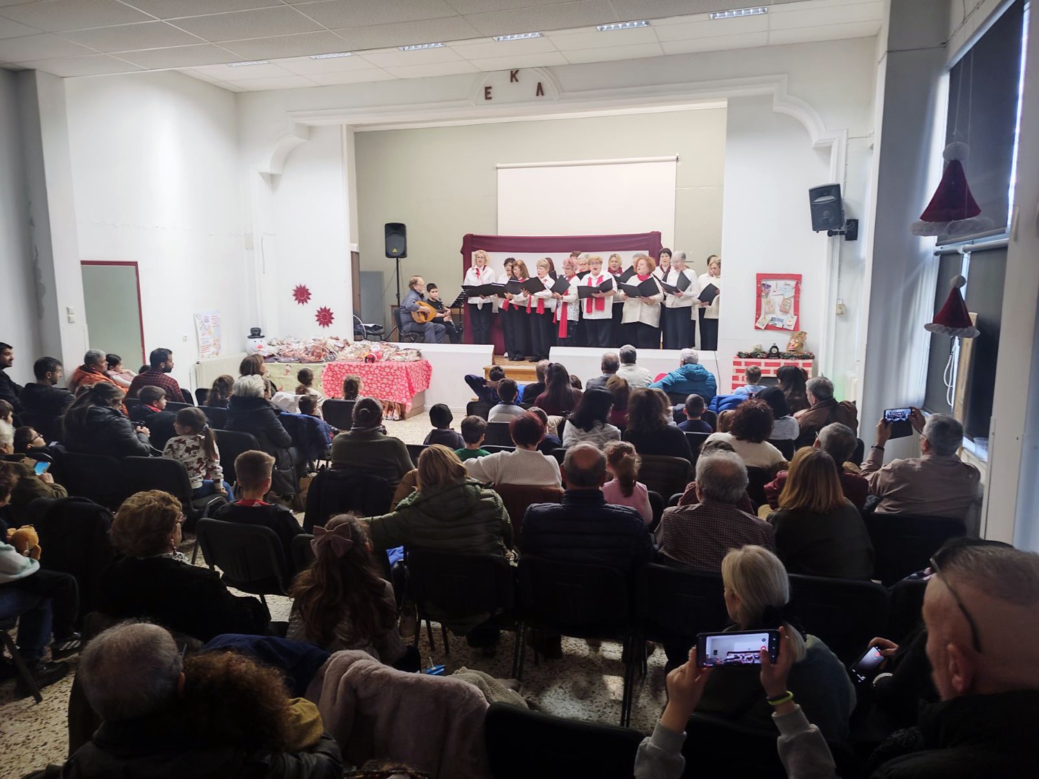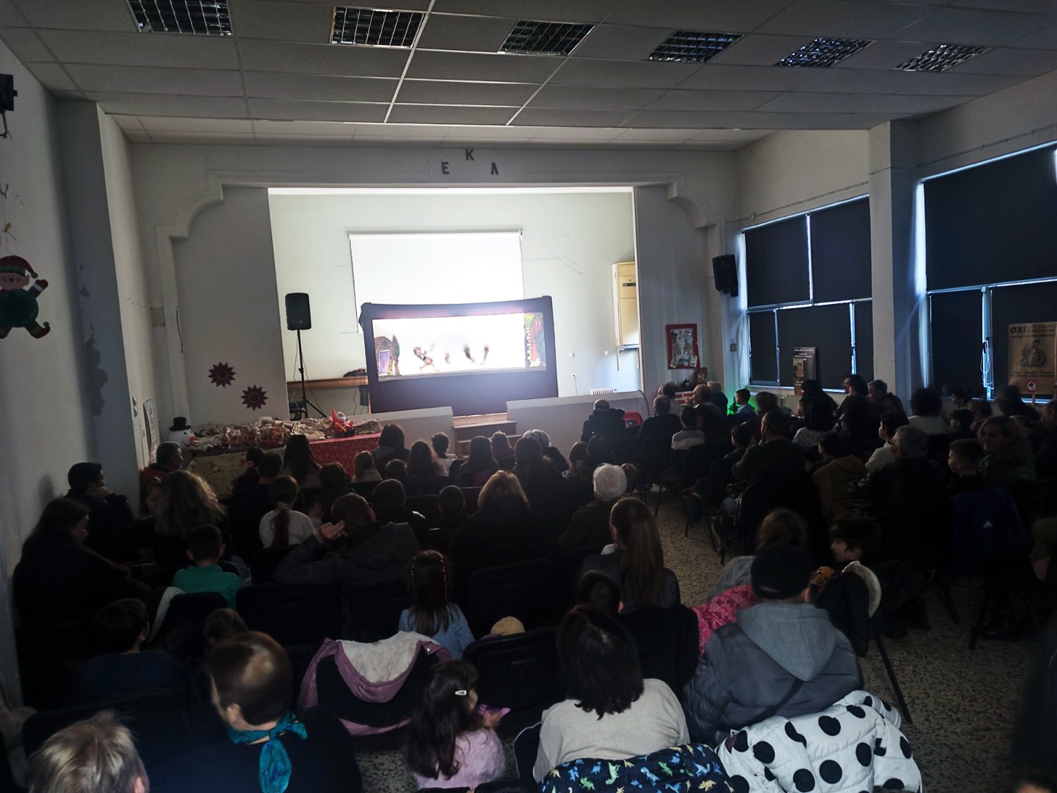 Μικροί και μεγάλοι είχαν την ευκαιρία να απολαύσουν την παράσταση «Ο Καραγκιόζης βοηθός του Αϊ Βασίλη» από το Θέατρο Σκιών του Νίκου Γκουντούρα ενώ στην συνέχεια η χορωδία του Σωματείου Συνταξιούχων με μαέστρο τον Γιώργο Δεληγιάννη και τον μικρό μαθητή Χρήστο Καλφούτζο στο κλαρίνο μας ταξίδεψαν με κάλαντα από όλη την Ελλάδα. Στην ανοιχτή πρόβα για την προετοιμασία της χορωδίας συνέβαλαν συνάδελφοι από τον Πανελλήνιο Μουσικό Σύλλογο καθώς και μαθητές μουσικής!