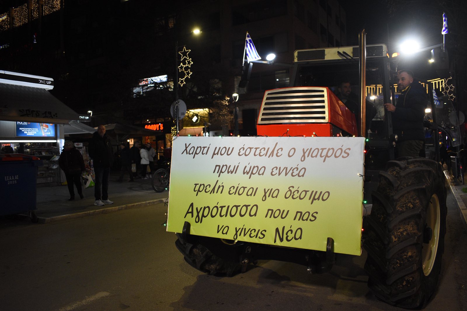 Σε νέα κινητοποίηση προχώρησαν απόψε Δευτέρα οι αγρότες του μπλόκου της Νίκαιας, συνεχίζοντας τον αγώνα τους με πορεία τρακτέρ στο κέντρο της Λάρισας.