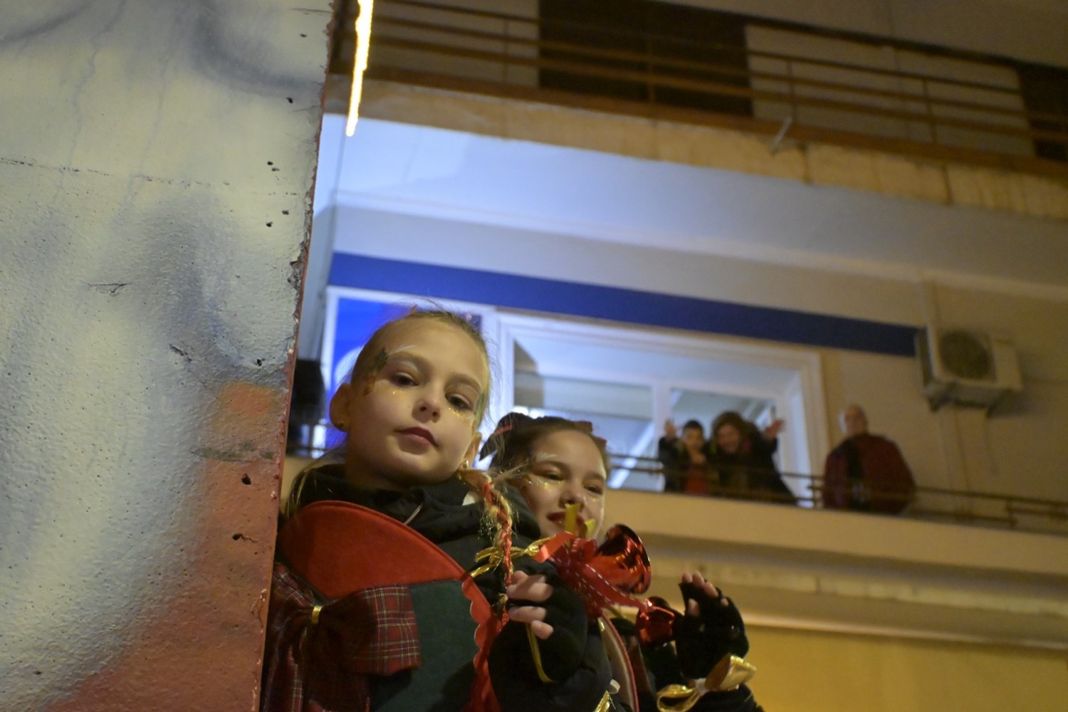 Πολίτες όλων των ηλικιών συμμετείχαν στα άρματα – από μαθητές μέχρι και συνταξιούχους – με τη συνοδεία της διαχρονικής φωνής του Γρηγόρη Αρναούτογλου και τον Ευτύχη Μπλέτσα να βιντεοσκοπεί.