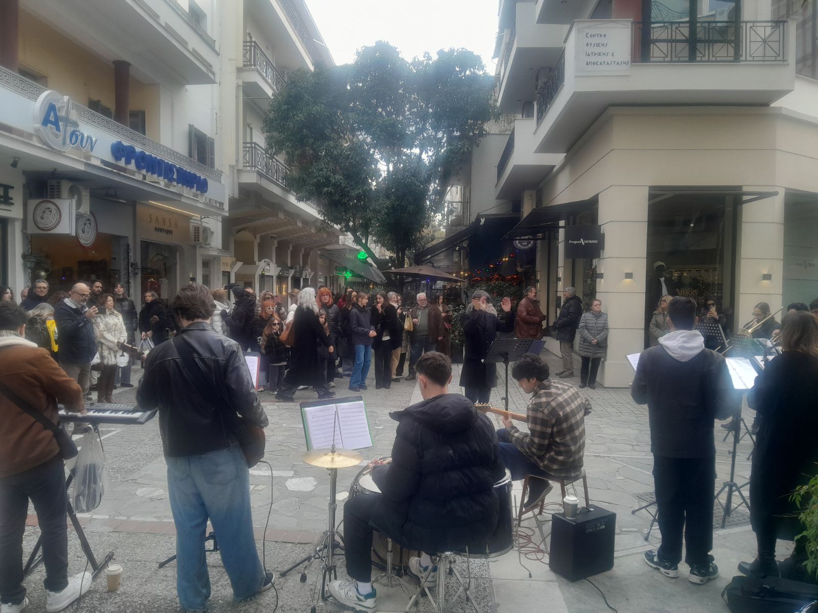 Εορταστική ατμόσφαιρα στο κέντρο της Λάρισας με συναυλία από τους «Ανέλιξη» (φωτο – βίντεο)