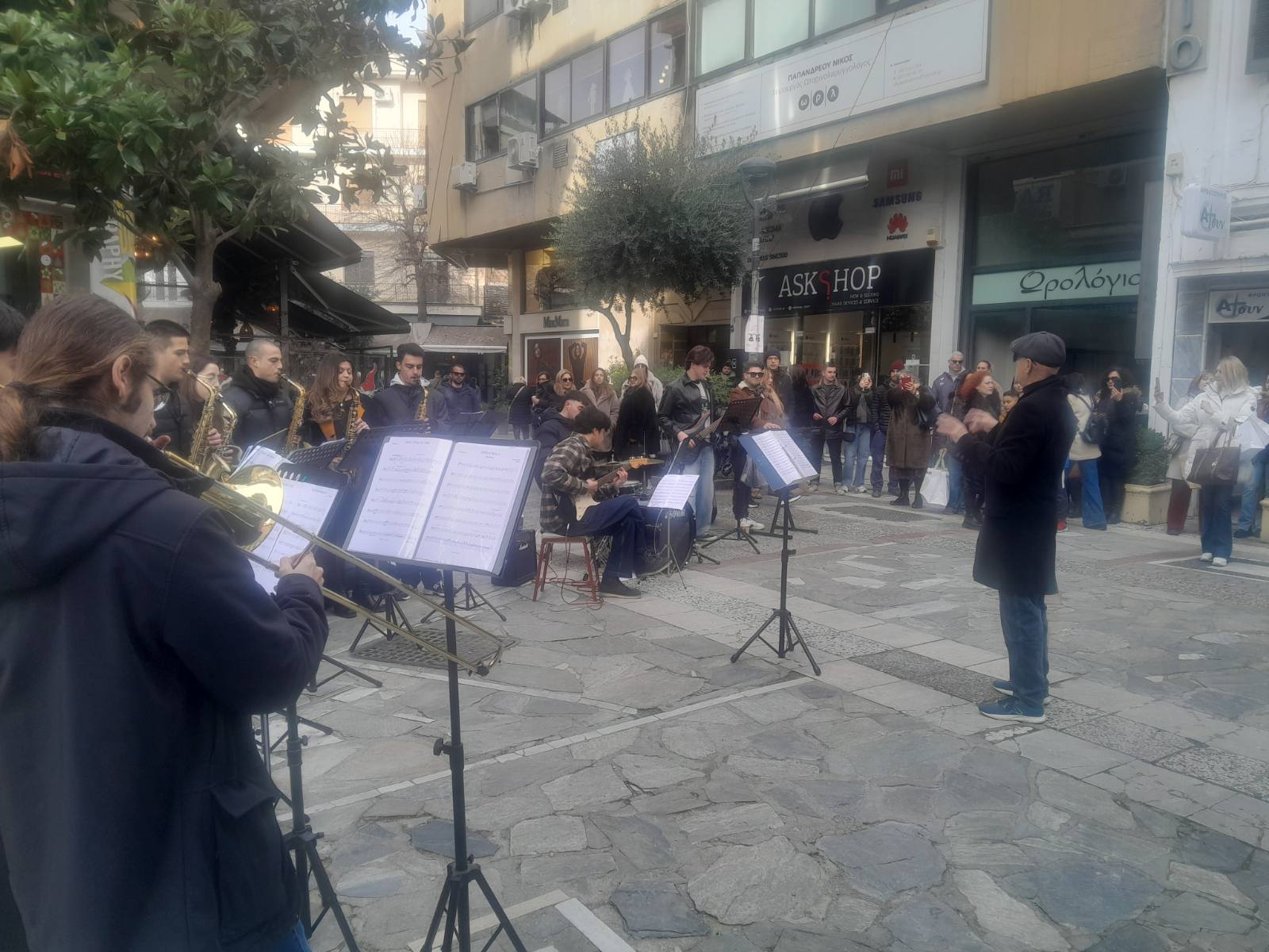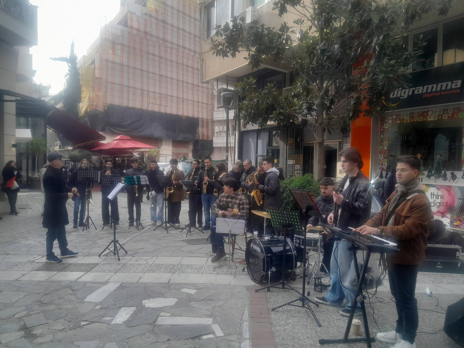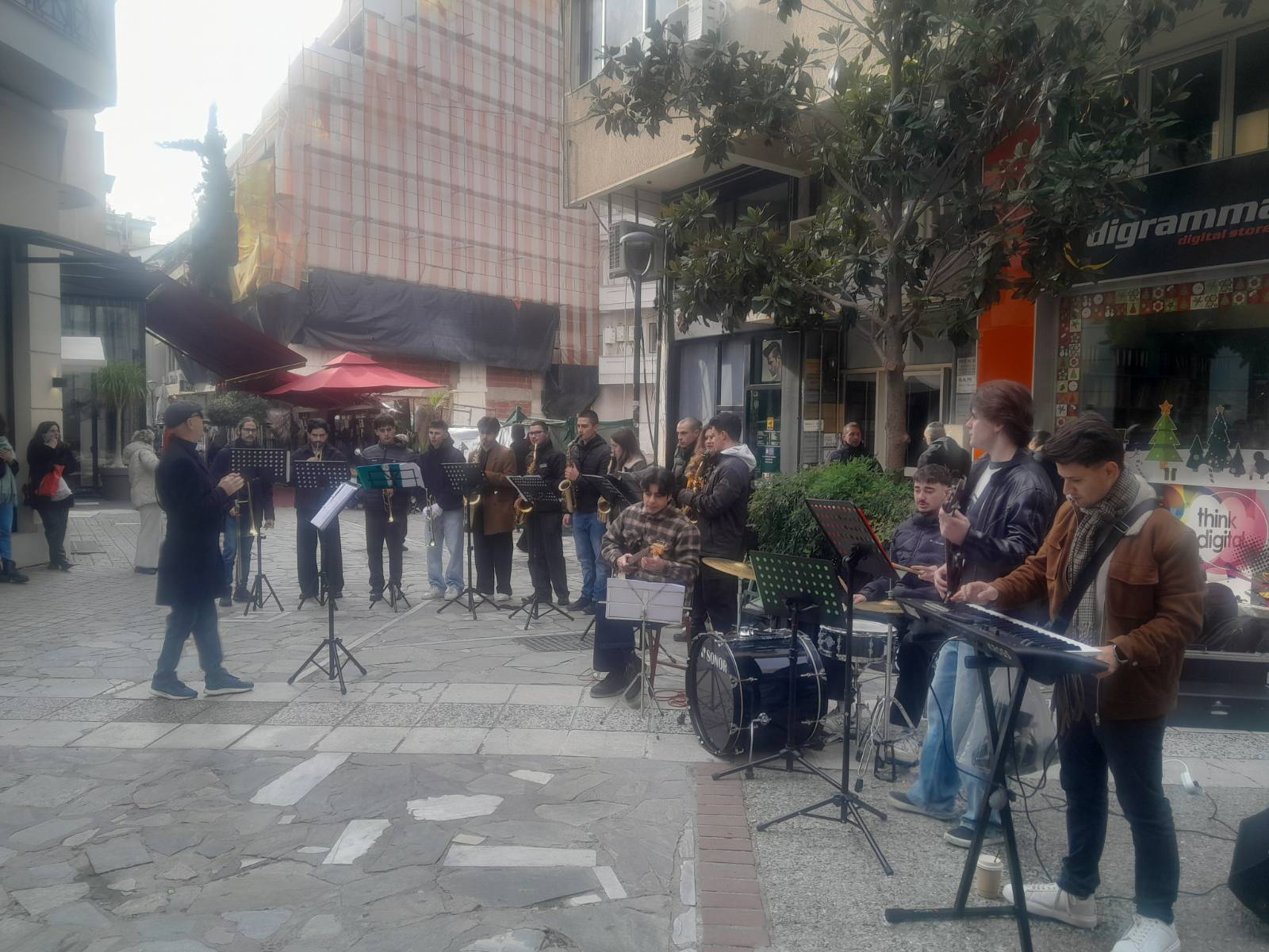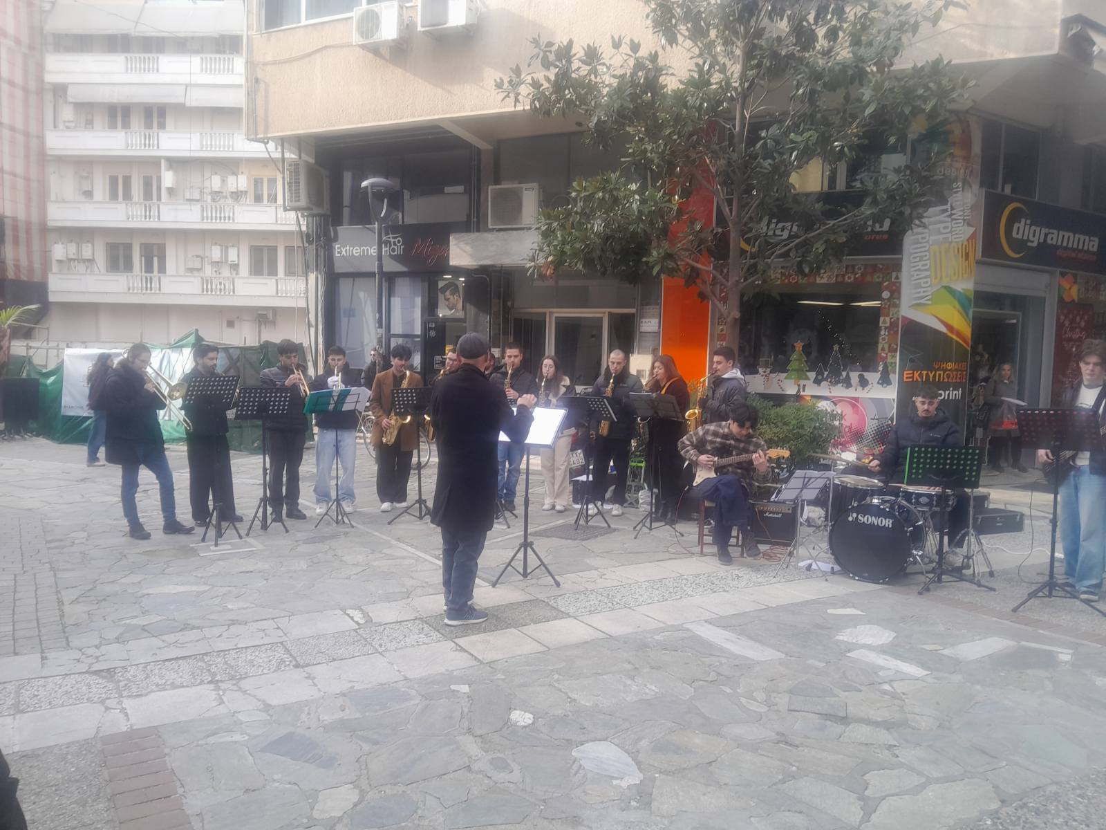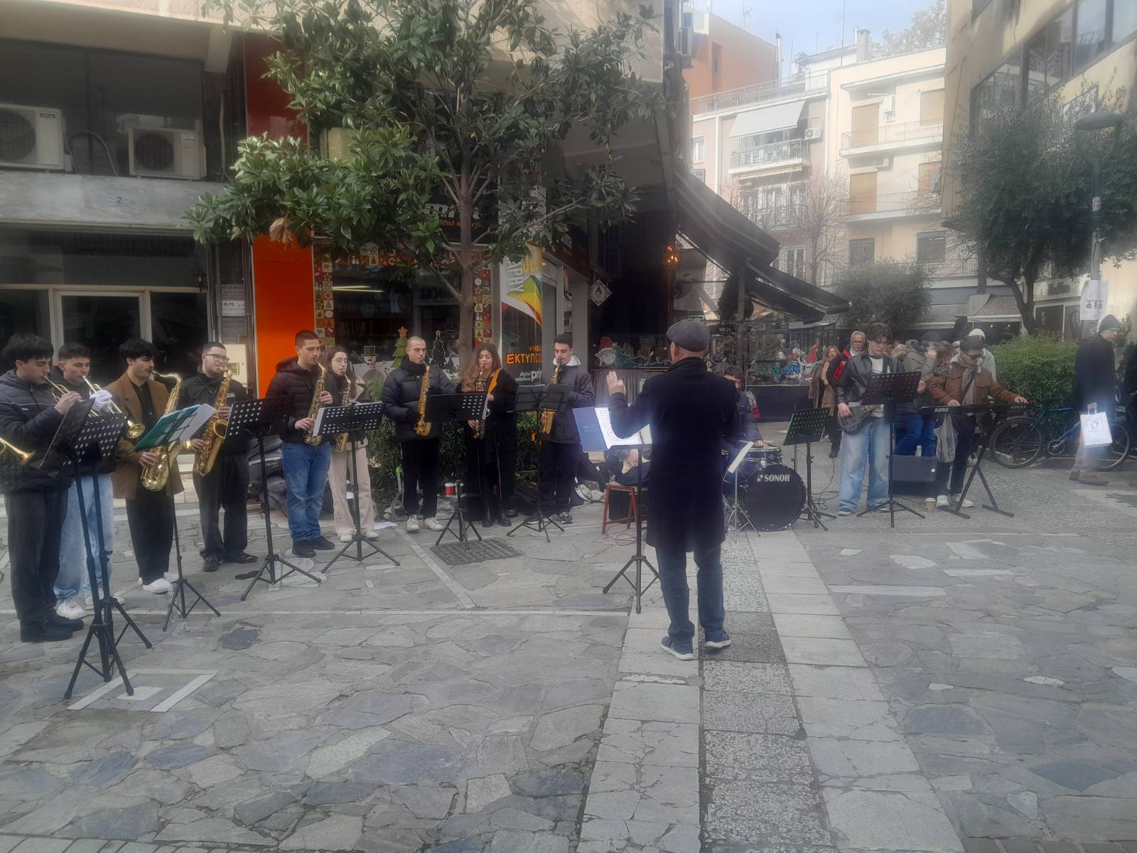 Λαρισαίοι απόλαυσαν σήμερα νωρίς το μεσημέρι της Τρίτης εορταστική συναυλία του Μουσικού Σχήματος “Ανέλιξη” στην συμβολή των πεζόδρομων Φρίξου και Δευκαλίωνος.