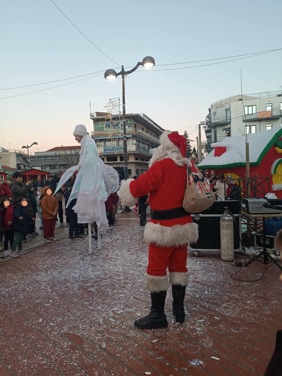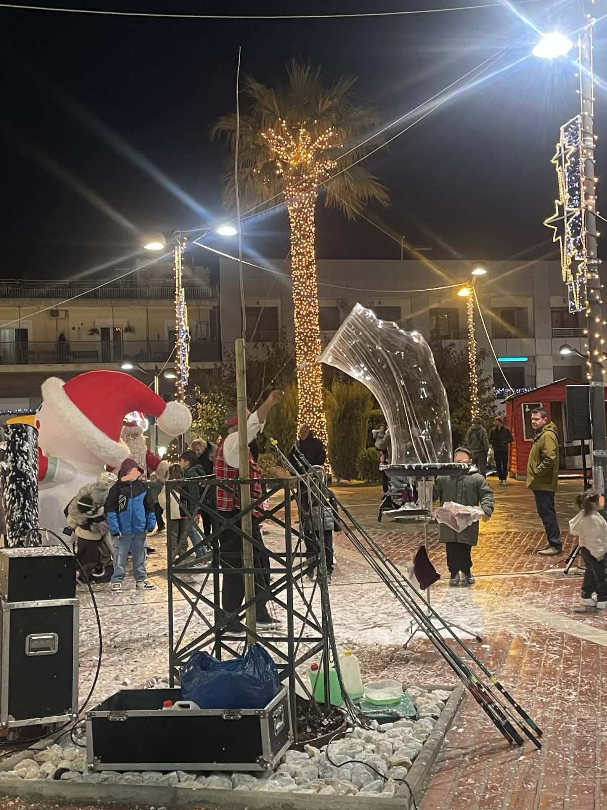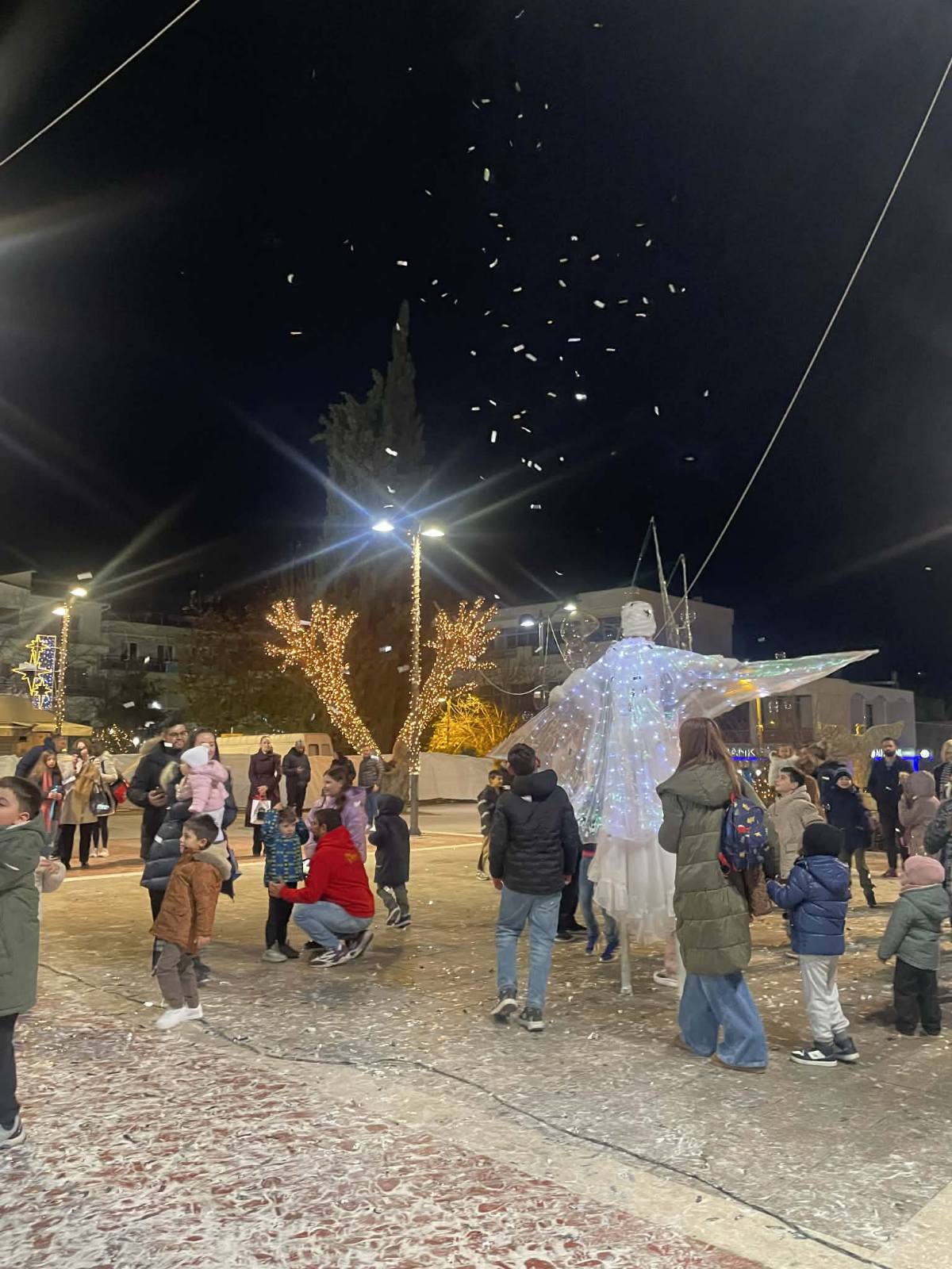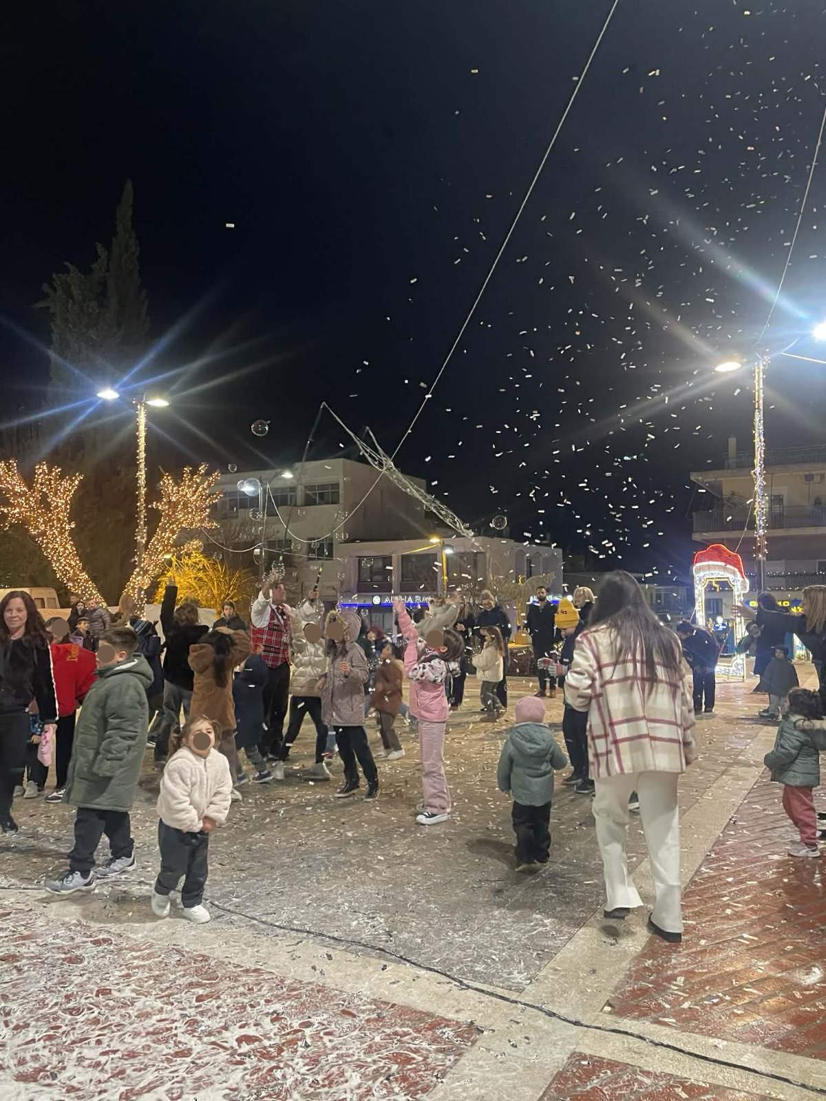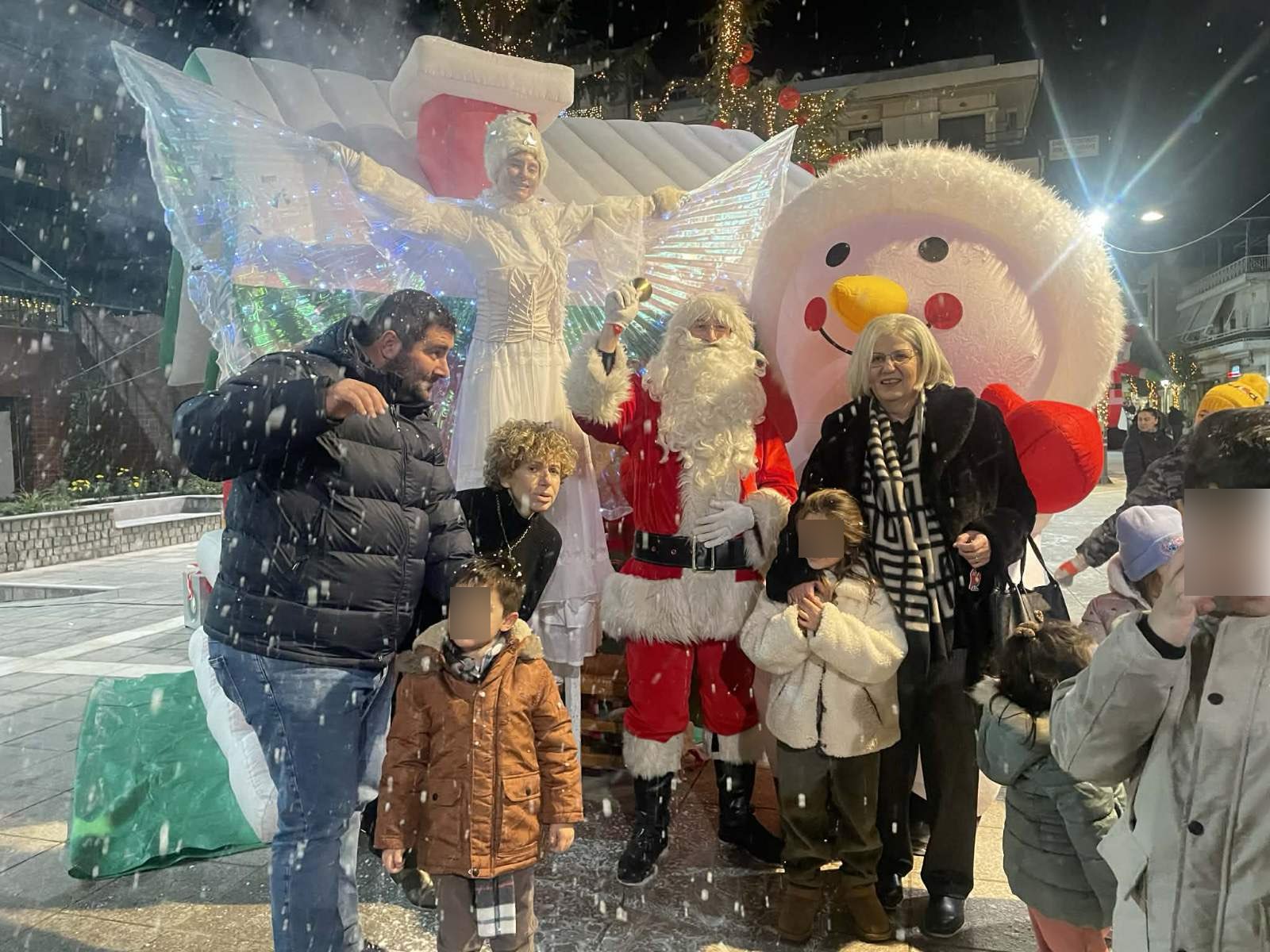 Από νωρίς, η πλατεία γέμισε παιδικές φωνές, χαμόγελα και οικογένειες που έσπευσαν να ζήσουν τη μαγεία των γιορτών. Φουσκωτά σπιτάκια, δημιουργικές παιδικές δράσεις και θεάματα δρόμου κράτησαν αμείωτο το ενδιαφέρον, μετατρέποντας το κέντρο της πόλης σε έναν ζωντανό, εορταστικό χώρο. Ιδιαίτερη εντύπωση προκάλεσε η μηχανή χιονιού, η οποία «έντυσε» την πλατεία στα λευκά, δημιουργώντας εικόνες βγαλμένες από χριστουγεννιάτικο παραμύθι και ενθουσιάζοντας μικρούς και μεγάλους.