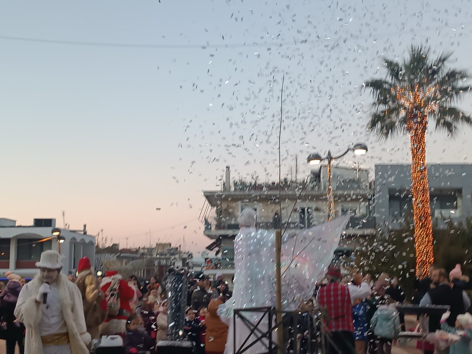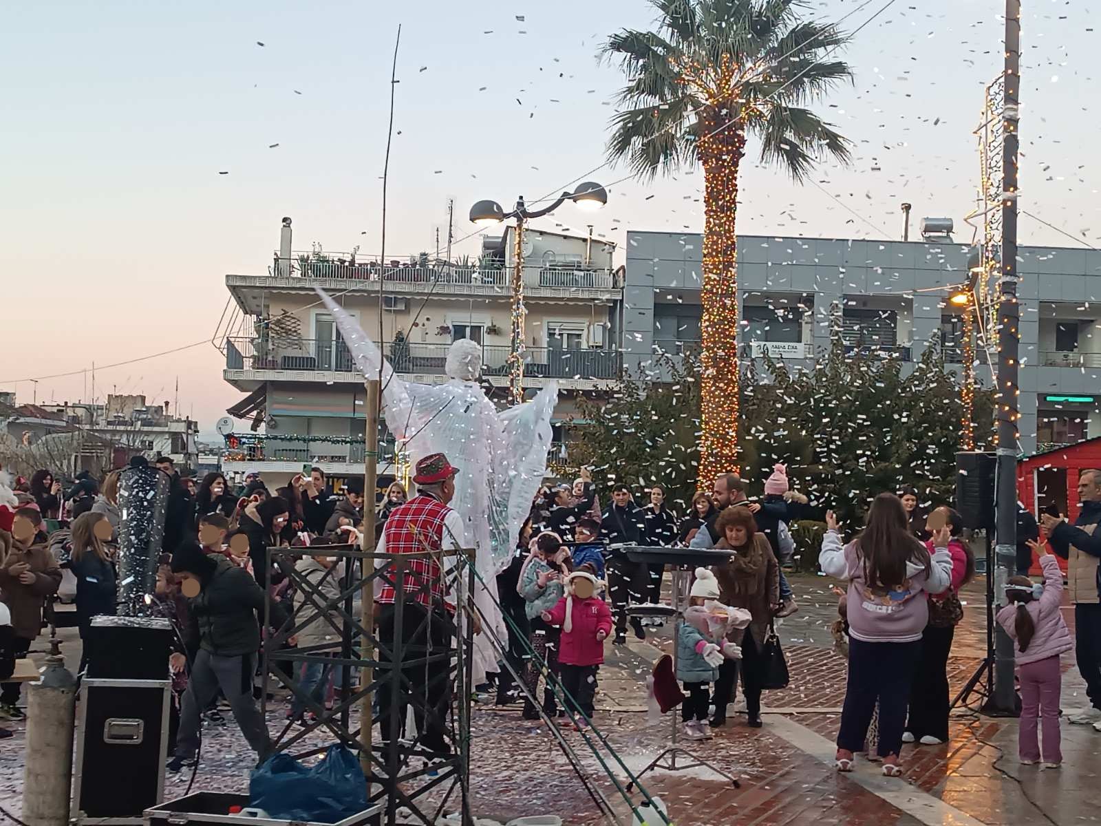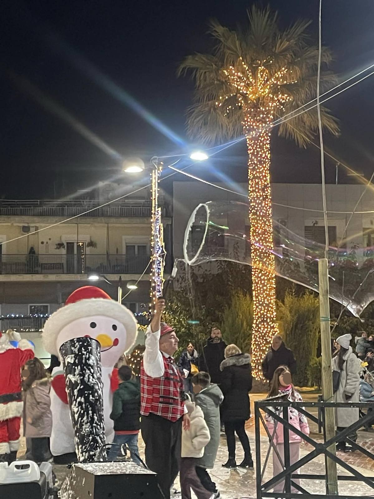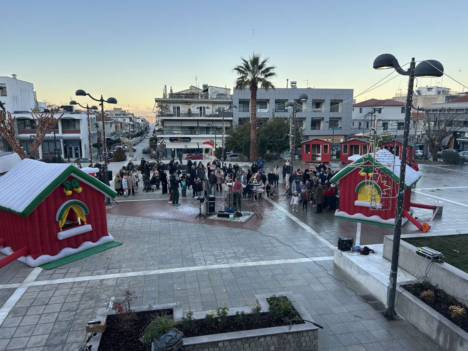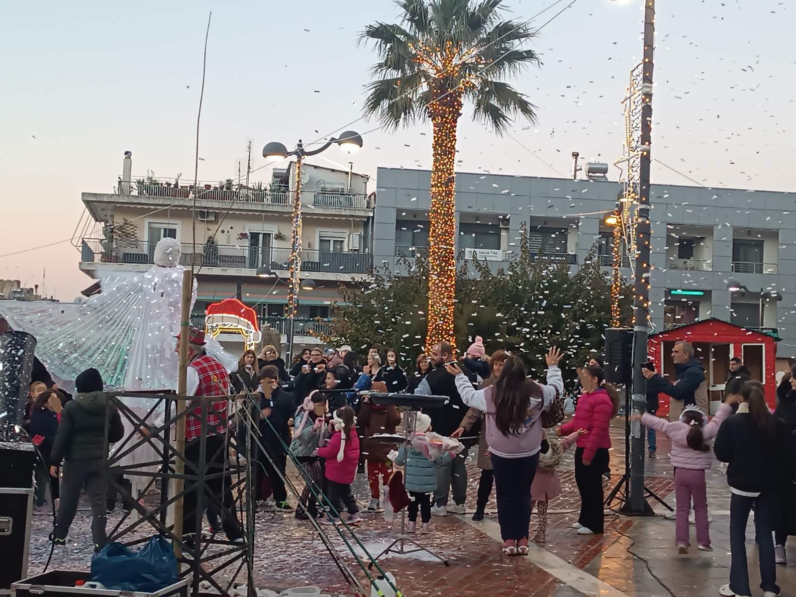 Από νωρίς, η πλατεία γέμισε παιδικές φωνές, χαμόγελα και οικογένειες που έσπευσαν να ζήσουν τη μαγεία των γιορτών. Φουσκωτά σπιτάκια, δημιουργικές παιδικές δράσεις και θεάματα δρόμου κράτησαν αμείωτο το ενδιαφέρον, μετατρέποντας το κέντρο της πόλης σε έναν ζωντανό, εορταστικό χώρο. Ιδιαίτερη εντύπωση προκάλεσε η μηχανή χιονιού, η οποία «έντυσε» την πλατεία στα λευκά, δημιουργώντας εικόνες βγαλμένες από χριστουγεννιάτικο παραμύθι και ενθουσιάζοντας μικρούς και μεγάλους.