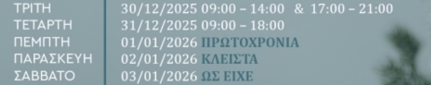 Δείτε πως θα λειτουργούν τα καταστήματα μέχρι και τις 03/01: