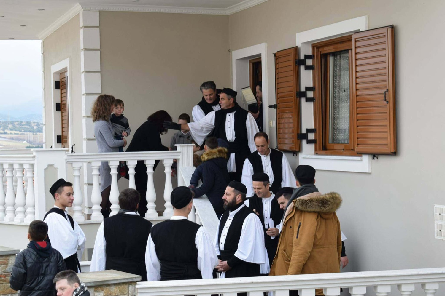 Οι νέοι του χωριού φορούν τις παραδοσιακές φορεσιές τους, χορεύουν και τραγουδούν τοπικά κάλαντα, μεταφέροντας ευχές από σπίτι σε σπίτι.