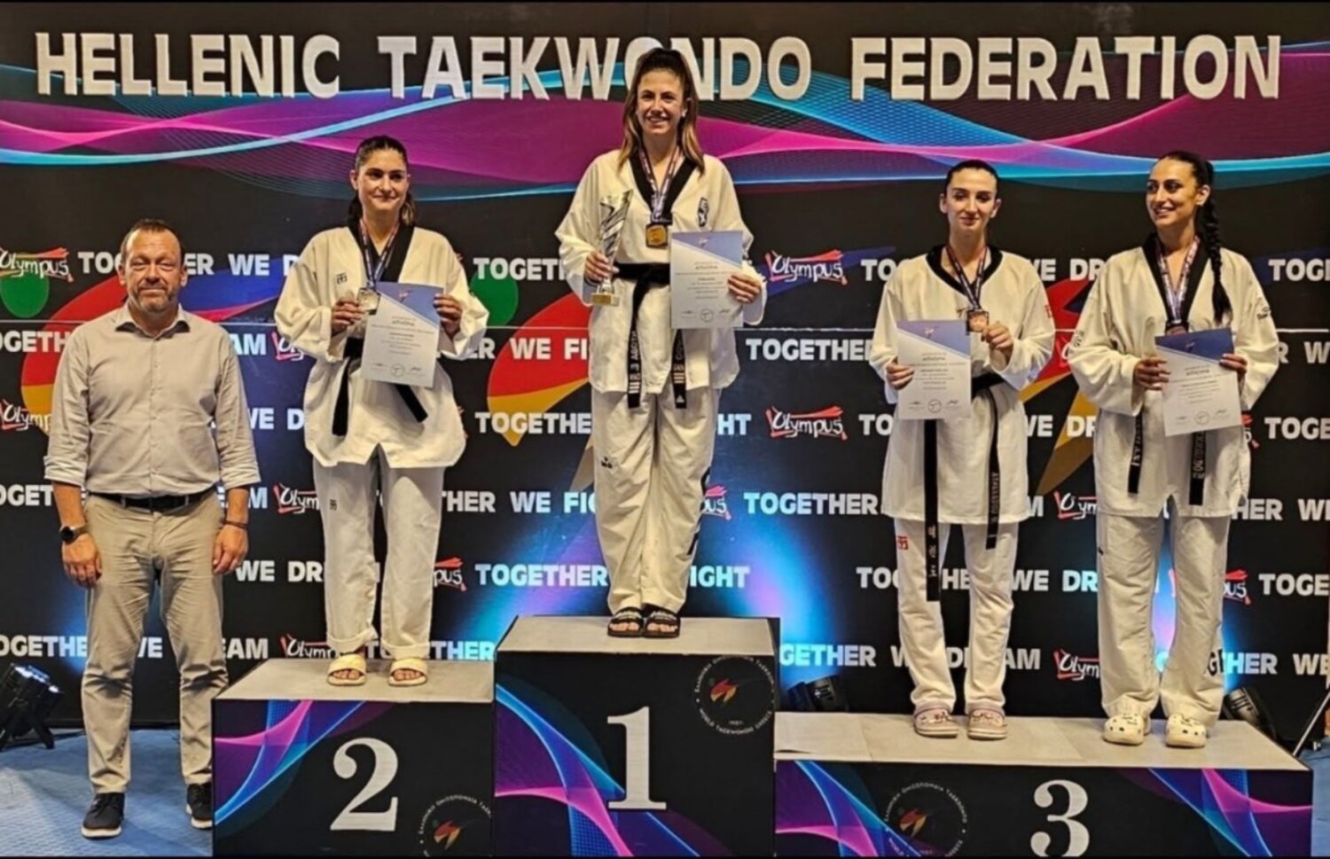 Το Διοικητικό Συμβούλιο και η Πρόεδρος κα Κωνσταντίνα Γκαγκανιάρα συγχαίρουν τους προπονητές Μπάμπη Ντόβα, Μιχάλη και Σάββα Λάκη, τους αθλητές και τις αθλήτριες, τους γονείς, καθώς και το επιστημονικό προσωπικό που πλαισιώνει την ομάδα.