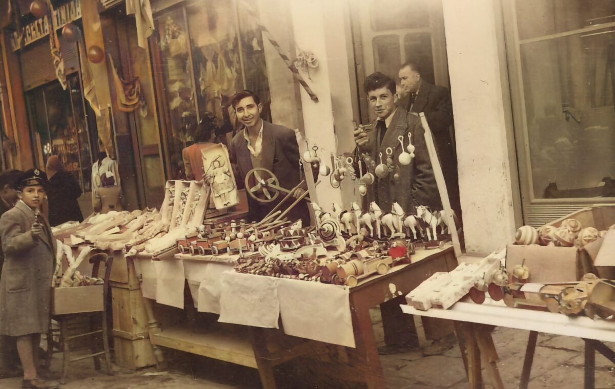 Η Λάρισα προσπαθούσε να ανασυνταχθεί μετά τις απώλειες της Κατοχής και του Εμφυλίου, όπου η πλειοψηφία των κατοίκων της πόλης είχε χάσει περιουσίες και τιμαλφή αντικείμενα στον βωμό της επιβίωσης. Είναι η εποχή που ξαναρχίζουν τα παλιά έθιμα της περιόδου των Χριστουγέννων, όπως τα ψώνια, τα δώρα, η κοπή της βασιλόπιτας της παραμονή της Πρωτοχρονιάς με το χαρακτηριστικό φλουρί. Και η εποχή που δειλά-δειλά οι Λαρισαίοι άρχισαν να αγοράζουν κοσμήματα. Οι έμποροι για να ενισχύσουν τους κοσμηματοπώλες στην Ερμού, κράταγαν ανοιχτά μέχρι αργά τα καταστήματά τους την τελευταία ημέρα του χρόνου, δίνοντας παράλληλα την ευκαιρία στους υπαλλήλους των μαγαζιών να διαθέσουν το στοκ εμπόρευμά τους σε μικρούς πάγκους μπροστά από τις εισόδους των καταστημάτων τους. Τα χρήματα που έβγαζαν οι υπάλληλοι εκείνη την ημέρα τα έπαιρναν ως δώρο. Κάτι σαν το θεσμοθετημένο “δώρο Χριστουγέννων” που οι εργοδότες δίνουν στους υπαλλήλους τους σήμερα.
