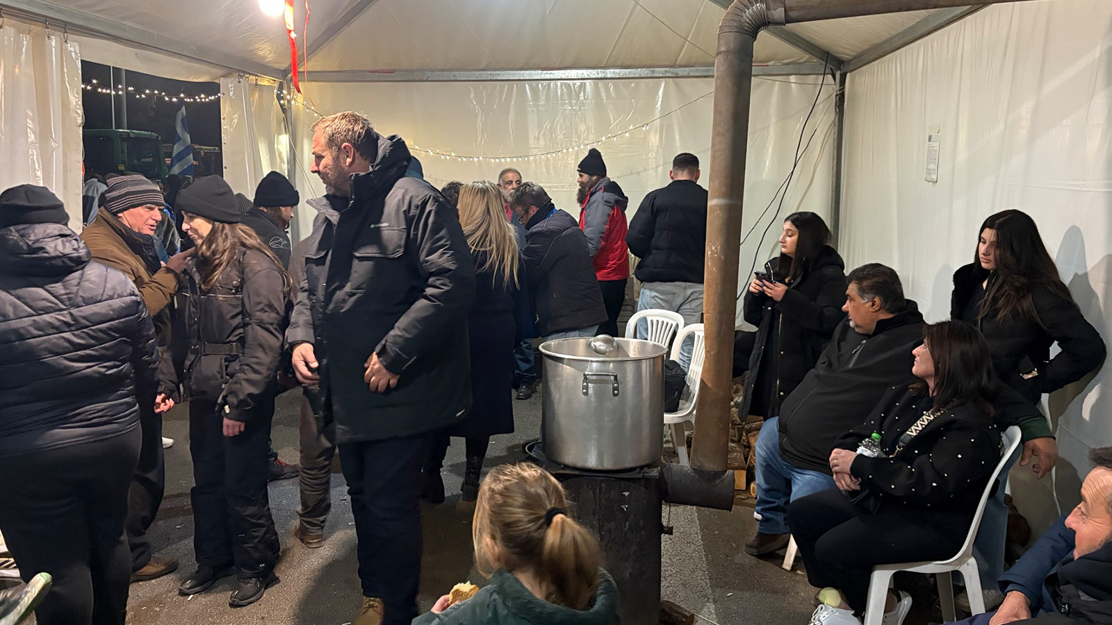 Μαζί τους είναι οι οικογένειες τους, κάτοικοι από πολλά χωριά του νομού Λάρισας, νεολαία. πολύς κόσμος συρρέει συνεχώς στο μπλόκο με τα απαραίτητα κεράσματα, σφίγγει τα χέρια των ανθρώπων του μόχθου και τους εύχεται «Καλή χρονιά, γεμάτη αγώνες και νίκες».