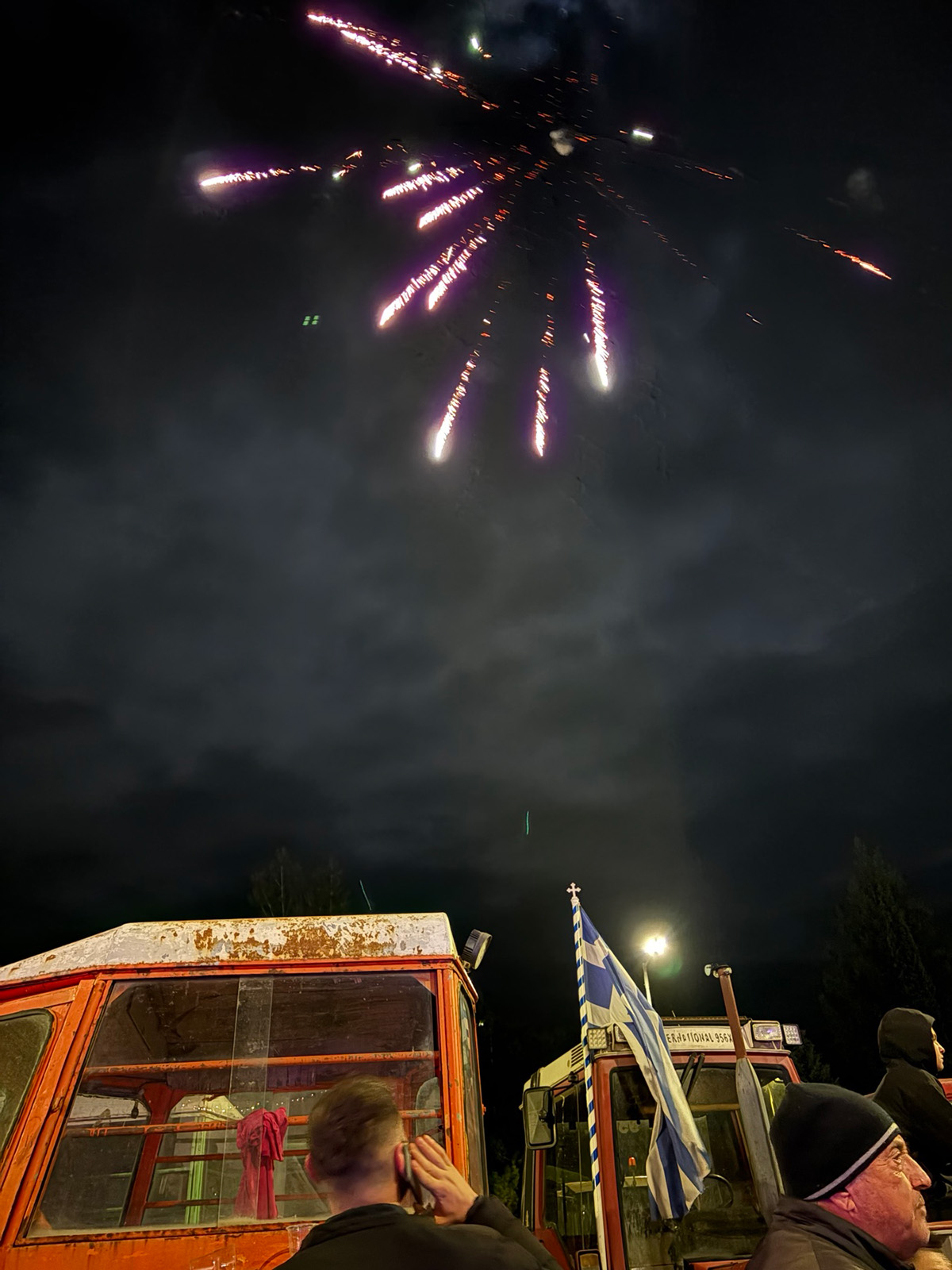 Το λαό που βρίσκεται παραμονή του νέου χρόνου στο πλάι των αγροτών ευχαρίστησε θερμά ο Ρίζος Μαρούδας σημειώνοντας «Σας καλωσορίζουμε στο δεύτερο σπίτι μας. Θα τα καταφέρουμε να βγούμε νικητές από αυτήν την μάχη και αυτή η νίκη θα είναι και δική σας που έχετε χτίσει ασπίδα προστασίας στον αγώνα μας απέναντι στην στάση της κυβέρνησης που κάνει κάθε προσπάθεια να τον συκοφαντήσει». Στο πλευρό τους στο μπλόκο της Νίκαιας παρευρίσκεται ο βουλευτής του ΚΚΕ Γιώργος Λαμπρούλης.