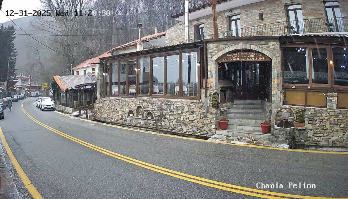 Ξεκίνησε η χιονόπτωση στο Πήλιο: Δείτε live εικόνα από τα Χάνια (βίντεο)