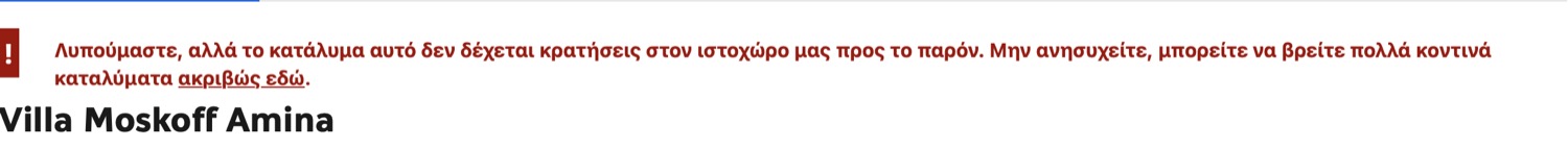 Ωστόσο, σήμερα αναζητώντας κανείς να νοικιάσει τη Βίλα μέσω booking.com, βγαίνει η εξης ειδοποίηση: