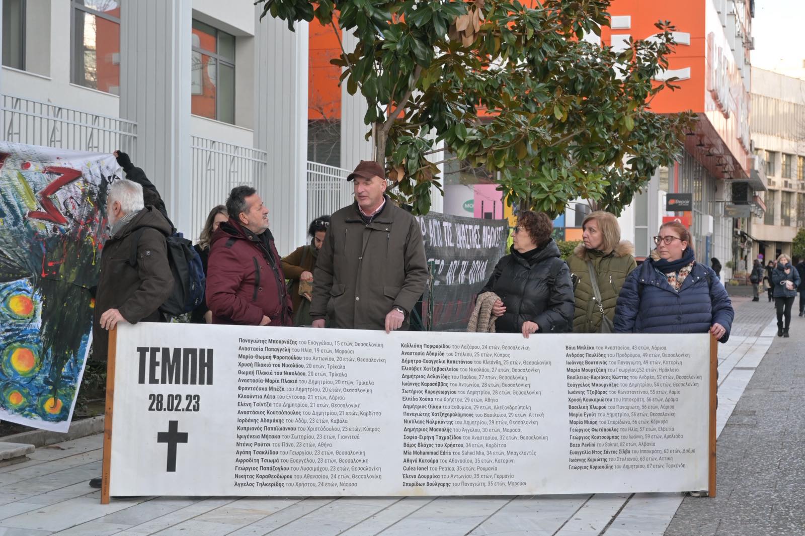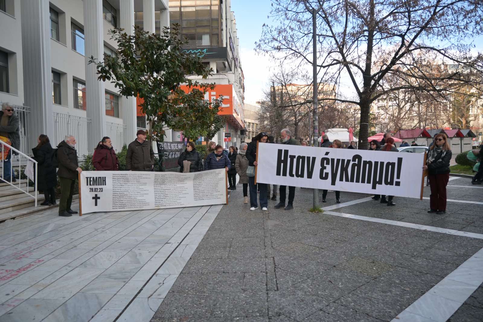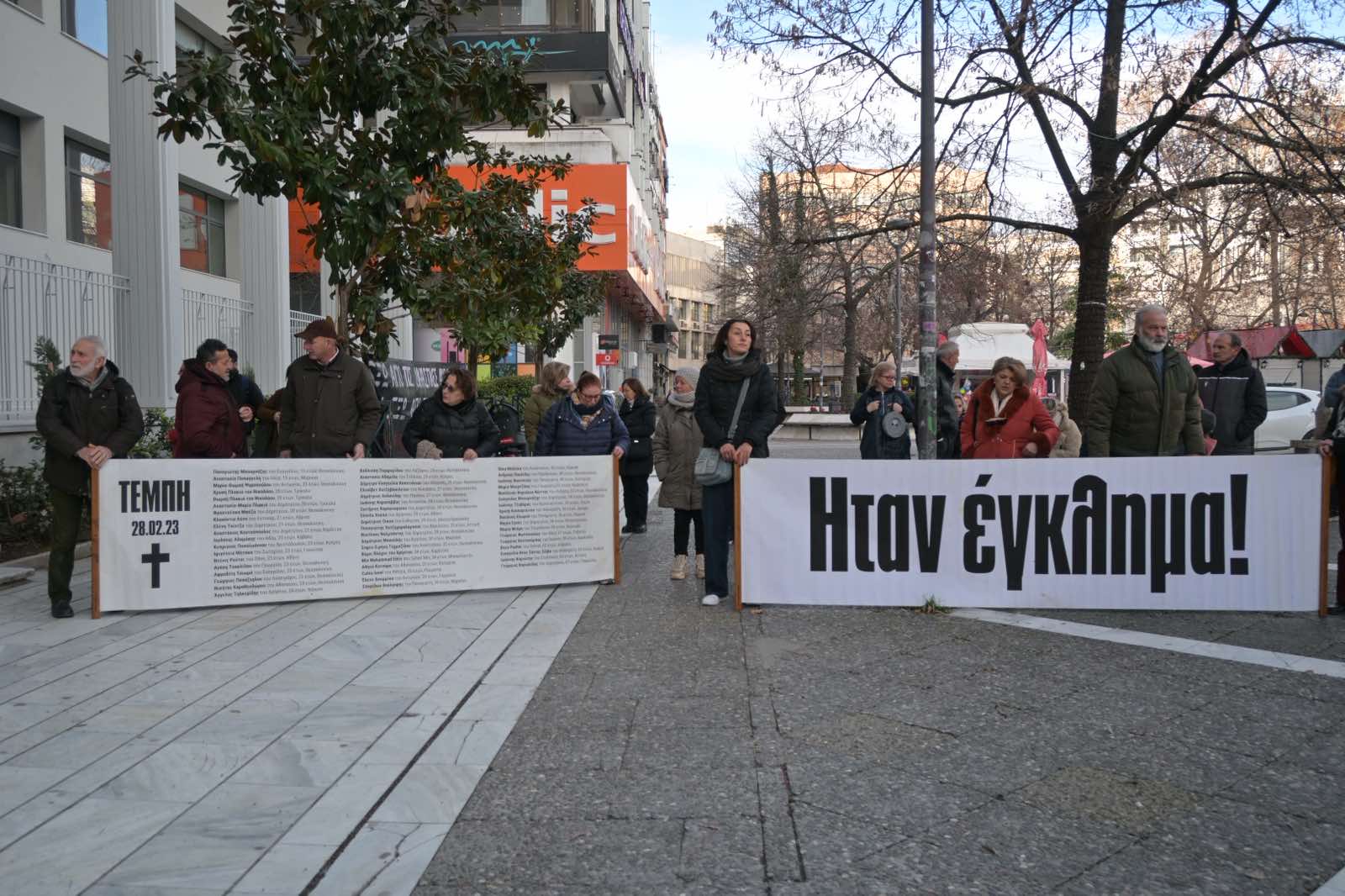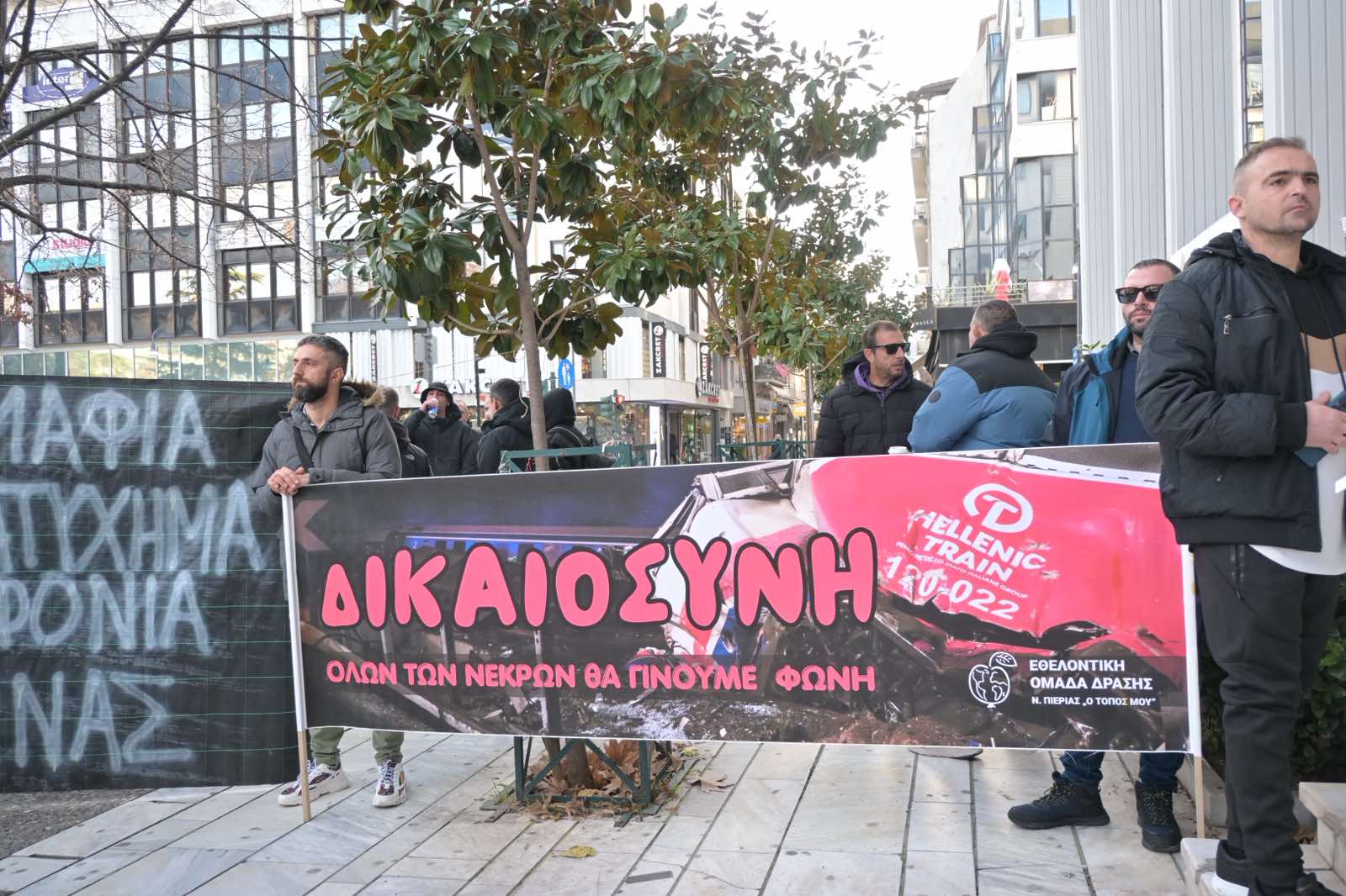 Πολίτες από την Κατερίνη βρίσκονται στη Λάρισα για στήριξη των οικογενειών των θυμάτων.