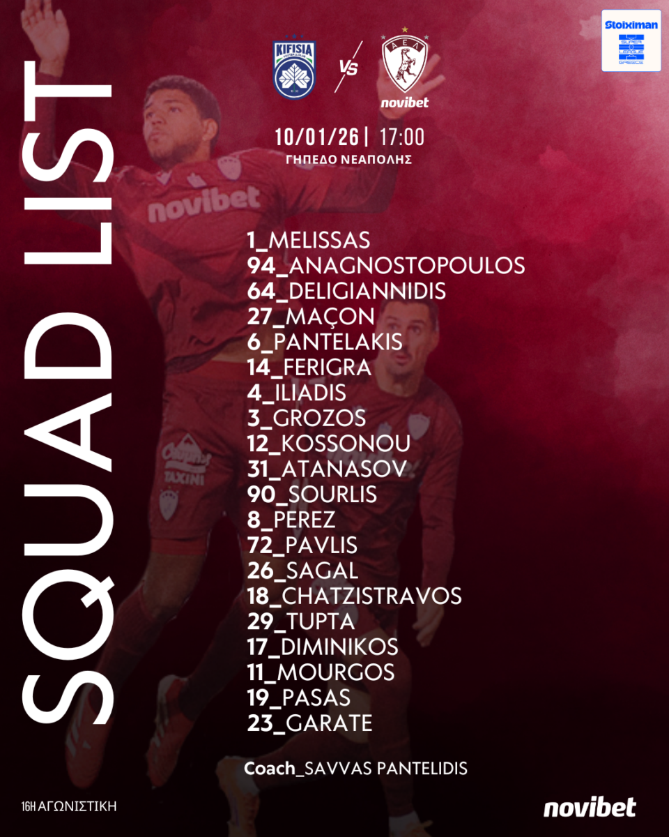 Αναφορικά με τους όσους άφησε εκτός αποστολής ο Σάββας Παντελίδης, αυτοί δεν είναι άλλοι από τους Θοδωρή Βενετικίδη και Πασχάλη Στάικο, οι οποίοι ταλαιπωρούνται από ίωση, τους Κώστα Αποστολάκη και Εμάνουελ Βινιάτο (σ.σ. τραυματίες), αλλά και τους Θανάση Παπαγεωργίου, Λούκα Αντράντα και Κινγκ Φαϊζάλ, η οποίοι βρίσκονται υπό καθεστώς παραχώρησης.