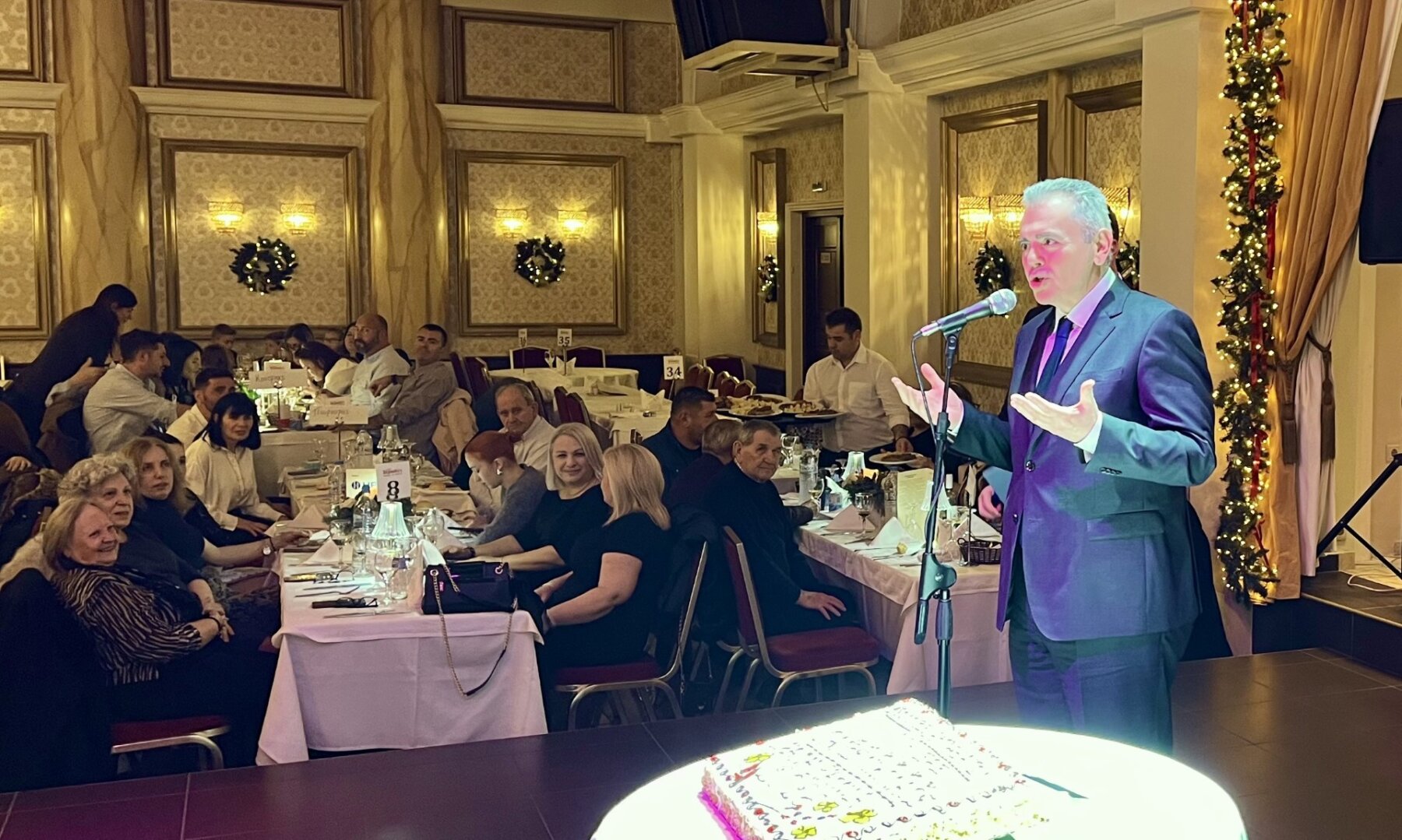 Ο Θεσσαλός πολιτικός στον χαιρετισμό του συνεχάρη τον πρόεδρο κ. Κωνσταντίνο Σιατραβάνη «γιατί είστε από τους δραστήριους συλλόγους στην Λάρισα. Αγαπητέ Δήμαρχε Λαρισαίων (Θανάση Μαμάκο) η Λάρισα είναι μια μεγαλούπολη τόσο όσο να γνωριζόμαστε, να διατηρούμε ανθρώπινες σχέσεις, να μη χανόμαστε μέσα στη συνάφεια του κόσμου. Και είναι σημαντικό ότι μια μεγαλούπολη όπως η Λάρισα που φιλοξενεί ανθρώπους απ’ όλη τη Θεσσαλία, αλλά και απ’ όλη την Ελλάδα, δεν τους αλλοτριώνει, αλλά τους δίνει τη δυνατότητα να διατηρούν τις ιδιαίτερες παραδόσεις, τα ήθη και τα έθιμα από τη γενέτειρά τους.