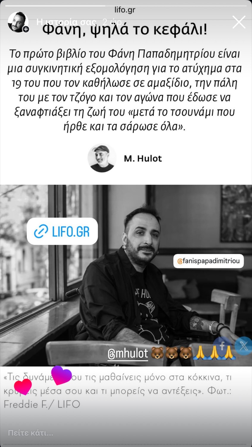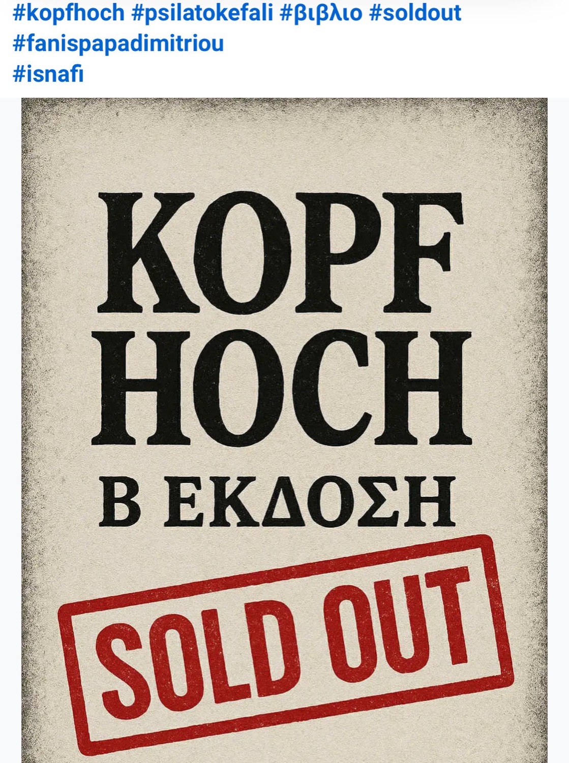 Το βιβλίο «Ψηλά το κεφάλι» αποτελεί μια αληθινή, βαθιά ανθρώπινη ιστορία δύναμης, αντοχής και αξιοπρέπειας, που έχει αγκαλιαστεί από το αναγνωστικό κοινό σε όλη την Ελλάδα. Μέσα σε μόλις 12 μήνες κυκλοφορίας, εξαντλήθηκε τόσο η Α’ όσο και η Β’ έκδοση, οδηγώντας ήδη στη Γ’ έκδοση του βιβλίου.