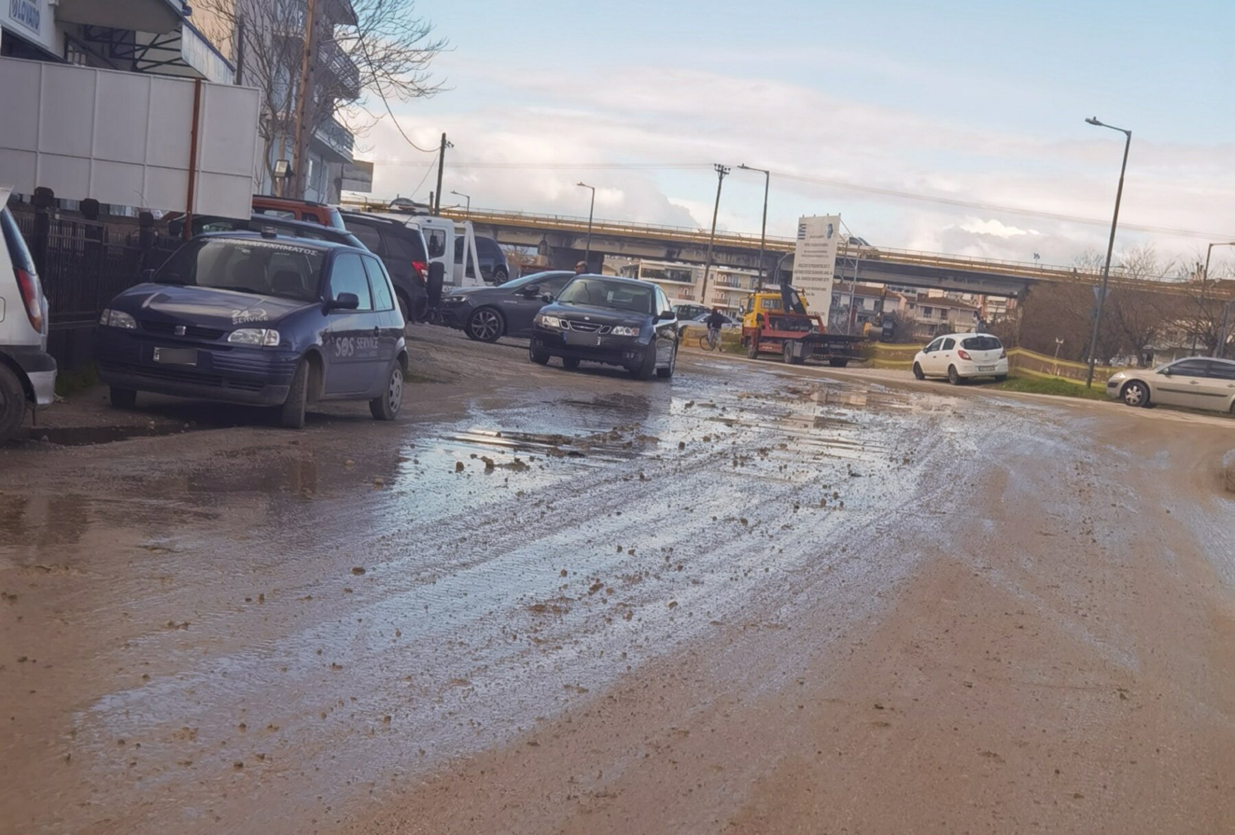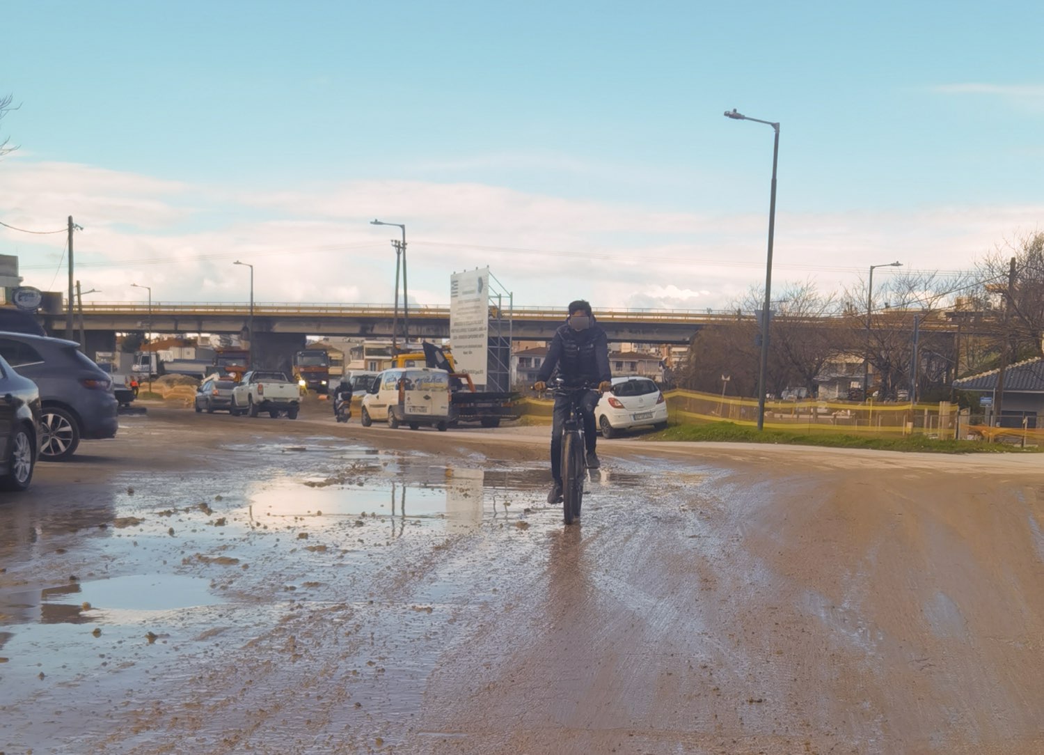 Σύμφωνα με καταγγελία Λαρισαίου, η οποία συνοδεύεται και από τις σχετικές φωτογραφίες που δημοσιεύονται μαζί με το ρεπορτάζ, φορτηγά μεταφέρουν συνεχώς χώμα μέσα σε κατοικημένη περιοχή, όπου λειτουργούν σχολεία και υπάρχουν πολυάριθμες κατοικίες. Το αποτέλεσμα είναι οι δρόμοι να έχουν μετατραπεί σε έναν απέραντο λασπότοπο, με σκόνη, λάσπη και εμφαντικές φθορές στο οδόστρωμα.
