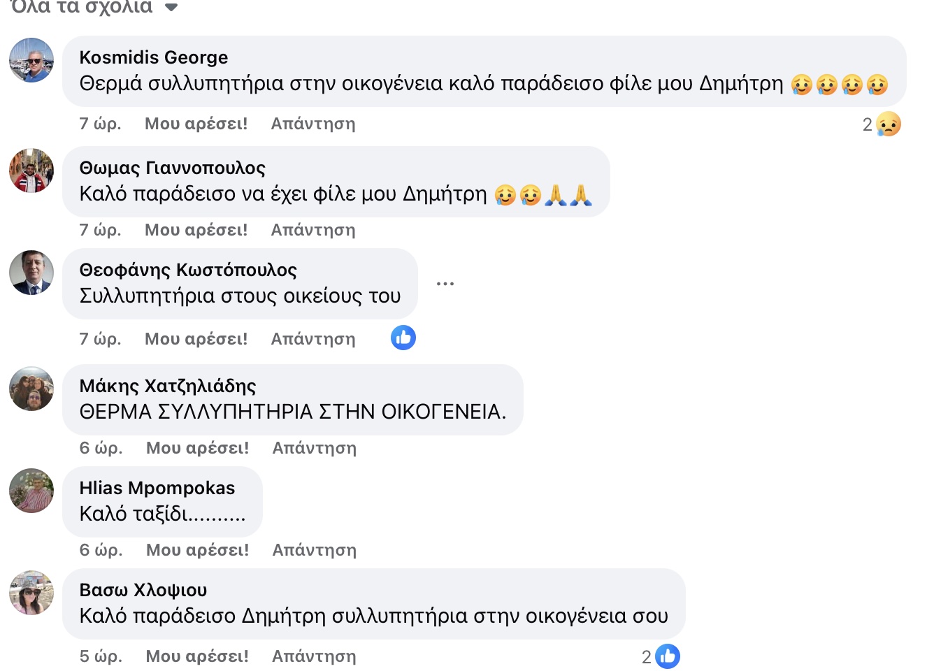 Βαρύ πένθος έχει σκεπάσει τη Λάρισα τις τελευταίες ώρες, με τα μέσα κοινωνικής δικτύωσης να έχουν κατακλυστεί από δεκάδες συλλυπητήρια μηνύματα, λόγια αγάπης και αποχαιρετισμούς για τον αιφνίδιο θάνατο του 55χρονου επιχειρηματία της εστίασης Δημήτρη Τσιρώνη. Φίλοι, συνεργάτες, γνωστοί αλλά και άνθρωποι που απλώς τον είχαν συναντήσει μέσα από τη δουλειά του, εκφράζουν δημόσια τη θλίψη και το σοκ τους για την απώλεια ενός ανθρώπου που έφυγε τόσο ξαφνικά, μέσα στη χαρά της στιγμής.