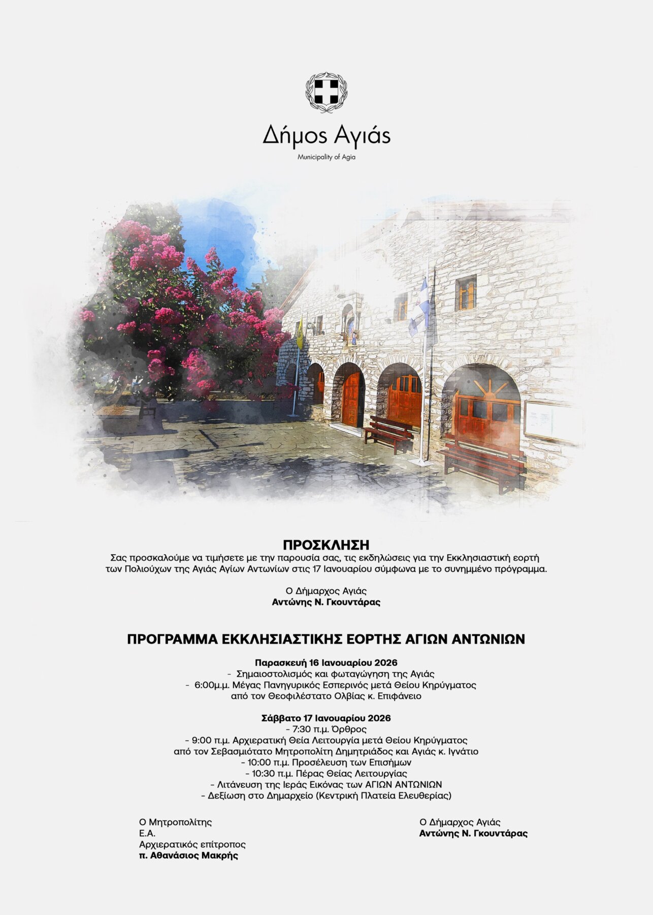 ΠΡΟΓΡΑΜΜΑ ΕΚΚΛΗΣΙΑΣΤΙΚΗΣ ΕΟΡΤΗΣ ΑΓΙΩΝ ΑΝΤΩΝΙΩΝ