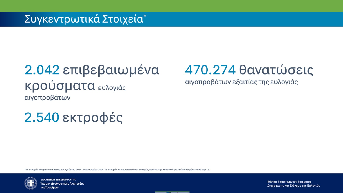 · ενώ έχουν θανατωθεί 470.274 ζώα, στο πλαίσιο εφαρμογής των προβλεπόμενων υγειονομικών πρωτοκόλλων.