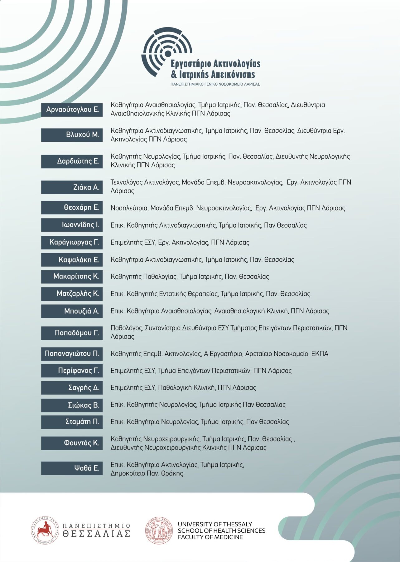 ”Ελπίζουμε στη δυναμική παρουσία και συμμετοχή ειδικών και ειδικευόμενων ιατρών, φοιτητών ιατρικής, νοσηλευτών και τεχνολόγων ακτινολόγων για μια γόνιμη αλληλεπίδραση σε επίπεδο διαλέξεων και συζήτησης περιστατικών, που αφορούν το Αγγειακό Εγκεφαλικό Επεισόδιο στην περιοχή της Θεσσαλίας και της ευρύτερης 5ης ΥΠΕ”