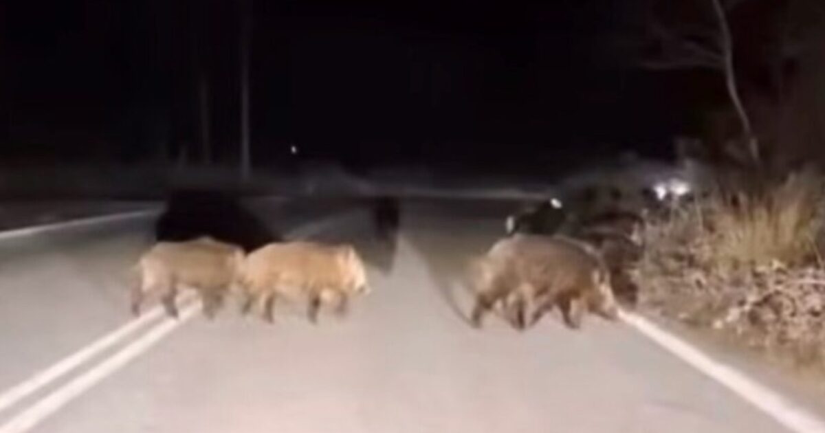 Στην Ε.Ο. Καλαμπάκας – Μουργκανίου, στο ύψος του στρατοπέδου ΠΑΠ, δεκάδες αγριογούρουνα διέσχισαν τον δρόμο την ώρα που από το σημείο κινούνταν αυτοκίνητα.