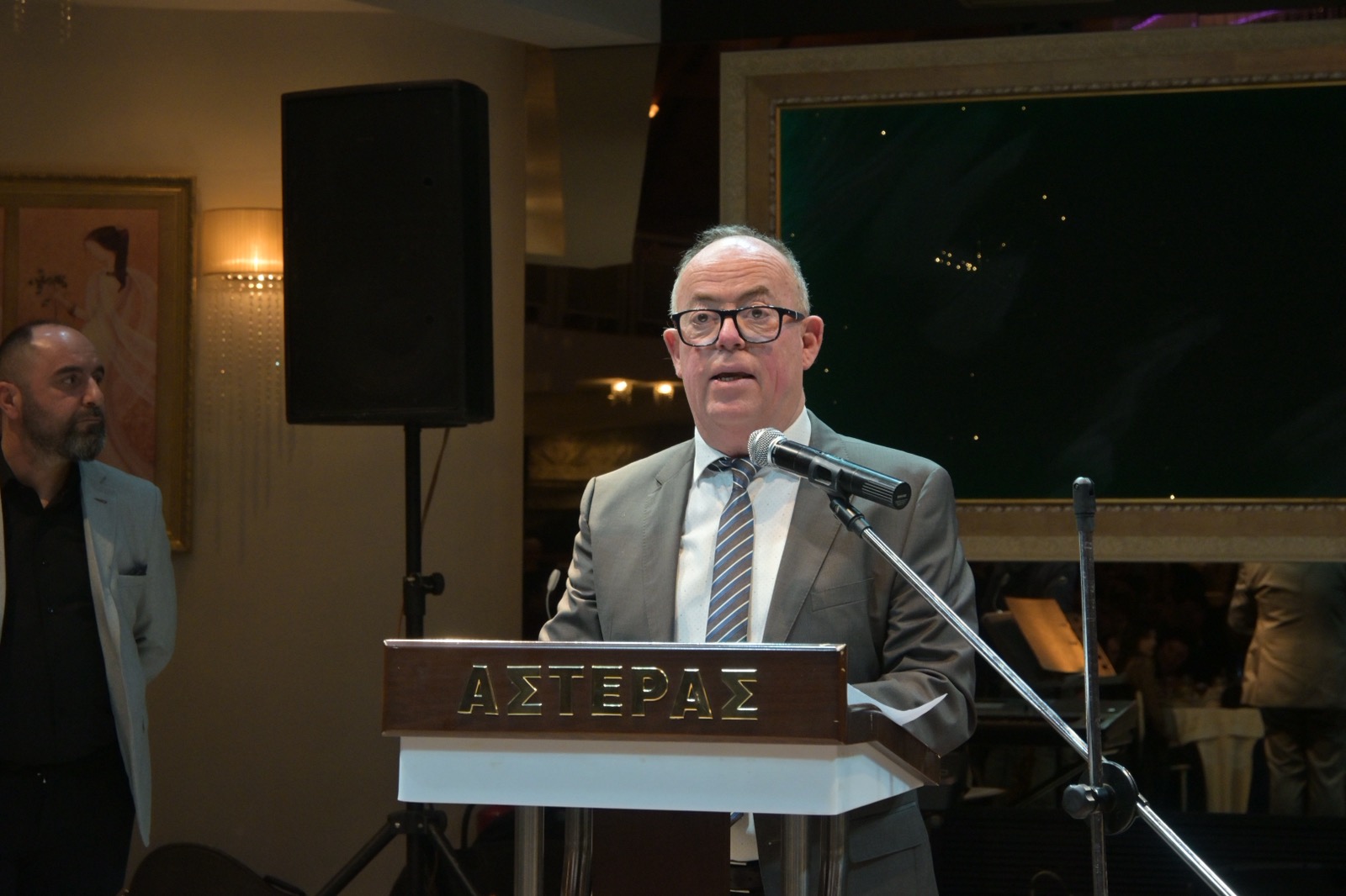Από την πλευρά του, ο Υφυπουργός Αγροτικής Ανάπτυξης και Τροφίμων κ. Χρήστος Κέλλας επισήμανε ότι η κοπή της βασιλόπιτας αποτελεί μια στιγμή αισιοδοξίας αλλά και αφορμή για διάλογο γύρω από τις προοπτικές και τις προκλήσεις της εθνικής οικονομίας. Τόνισε τον θεσμικό ρόλο των οικονομικών και εμπορικών επιμελητηρίων ως επίσημων συμβούλων του κράτους και αναφέρθηκε στις κυβερνητικές πολιτικές μείωσης φόρων και ασφαλιστικών εισφορών, οι οποίες, όπως ανέφερε, συνέβαλαν στη συνολική βελτίωση των οικονομικών δεικτών της χώρας. Κλείνοντας, συνεχάρη το Επιμελητήριο Λάρισας για το έργο του και ευχήθηκε μια καλύτερη χρονιά με υγεία και αισιοδοξία.