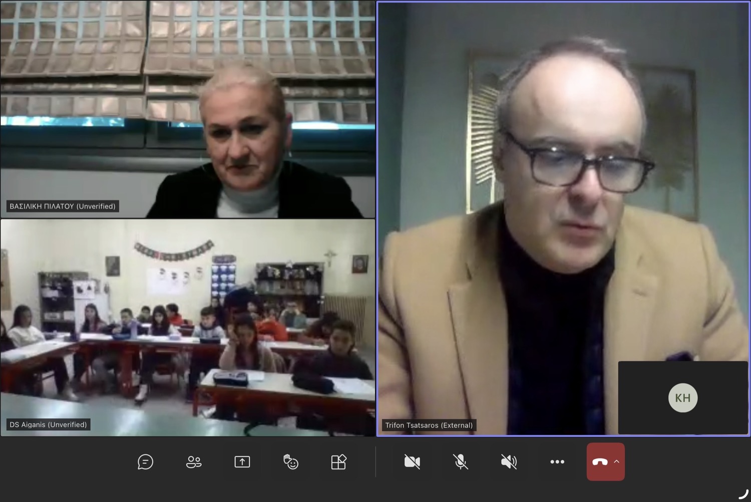 Στο πλαίσιο των δράσεων παιδαγωγικής και επιστημονικής καθοδήγησης των σχολικών μονάδων ευθύνης της Συμβούλου Εκπαίδευσης 6ης Θέσης Δασκάλων Π.Ε. Λάρισας, κ. Βασιλικής Πιλάτου, οι μαθητές και οι μαθήτριες των Γ’, Δ’, Ε΄ και Στ΄ τάξεων του Δημοτικού Σχολείου Αιγάνης συμμετείχαν σε διαδικτυακή συνέντευξη με τον Πρόεδρο του Δικηγορικού Συλλόγου Λάρισας, κ. Τρύφωνα Τσάτσαρο.