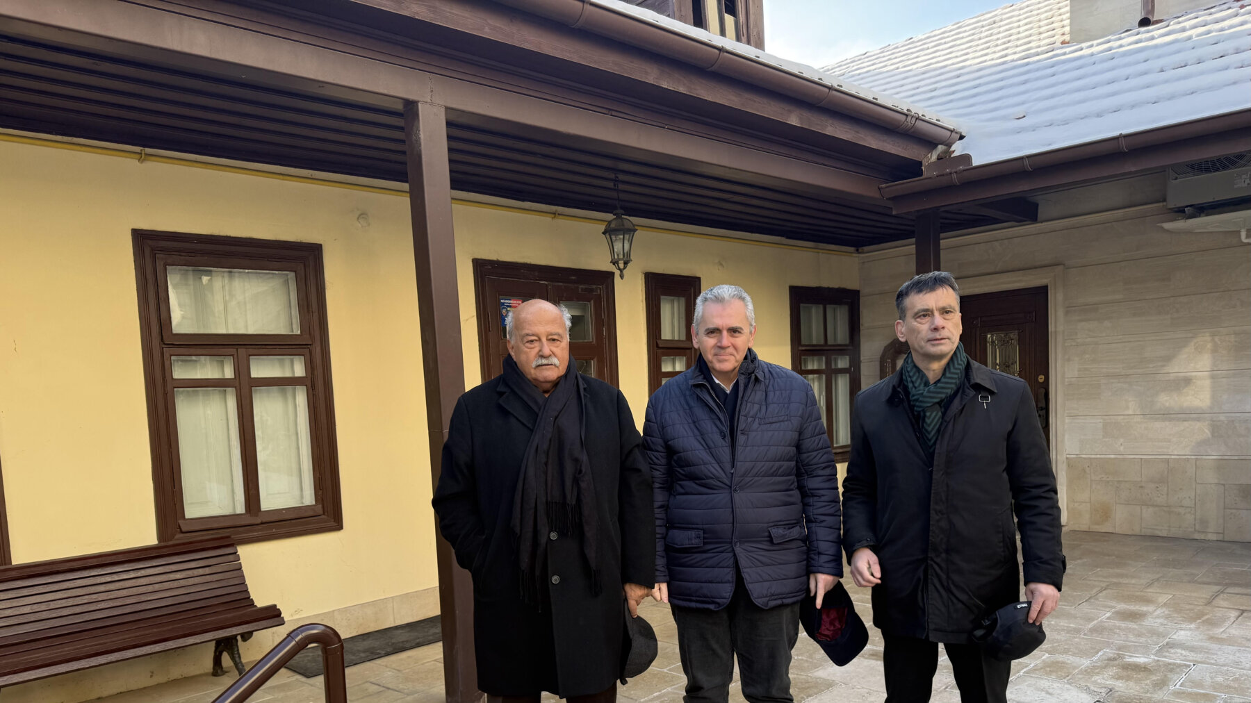 Ο Μάξιμος Χαρακόπουλος, ο Σύμβουλος της ΔΣΟ Κώστα Μυγδάλης και ο Σύμβουλος Επικοινωνίας της Ελληνικής Πρεσβείας στην οικία του Φιλικού Μιχάλη Κάτσικα.