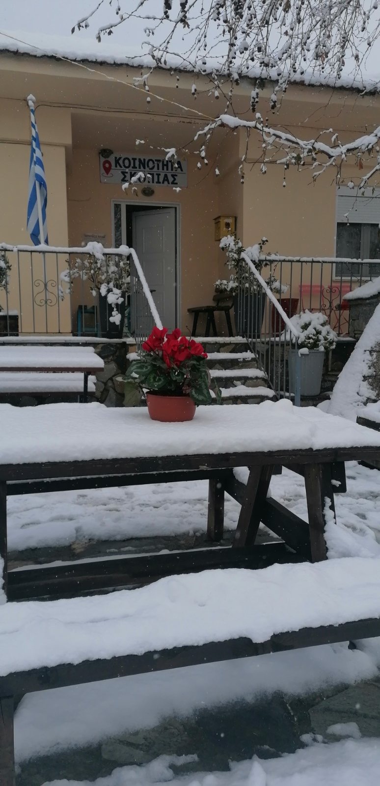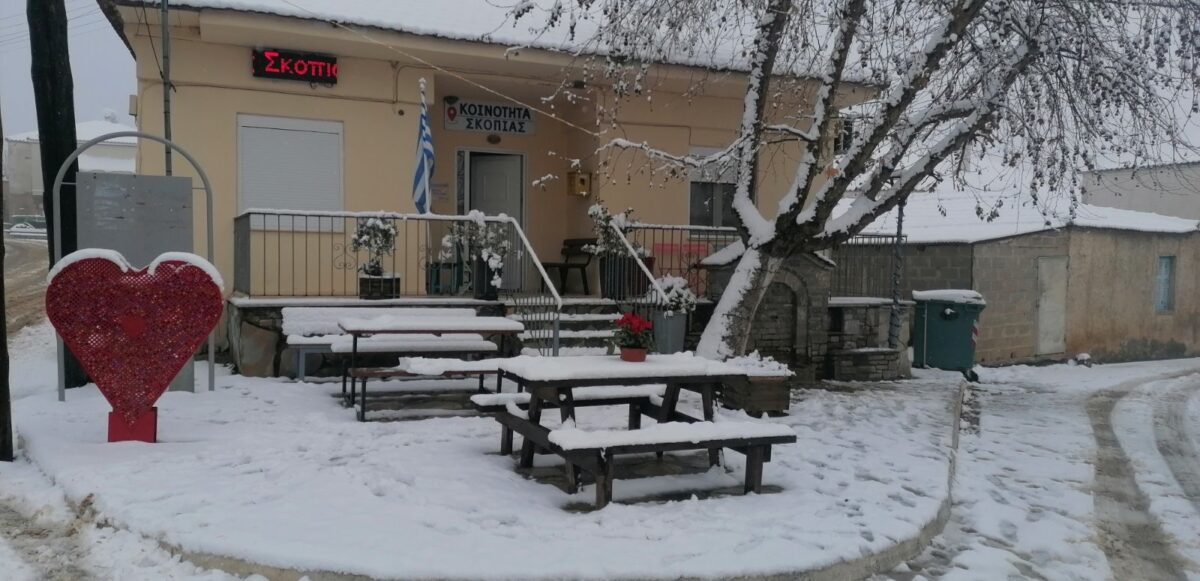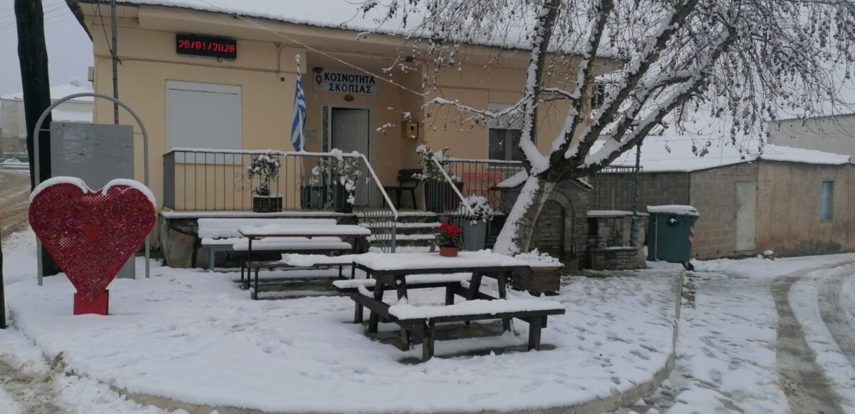 Στην τοπική κοινότητα Σκοπιάς όπως καταγράφει το ifarsala.gr, το χιόνι έχει ήδη καλύψει τις οδικές αρτηρίες. Για τον λόγο αυτό, μηχανήματα έργου επιχειρούν από νωρίς στο σημείο, προχωρώντας στον καθαρισμό του οδοστρώματος και στη ρίψη αλατιού, ώστε να διασφαλιστεί η ασφαλής μετακίνηση των κατοίκων και να παραμείνει ανοιχτό το οδικό δίκτυο που συνδέει το χωριό με τις γύρω περιοχές.