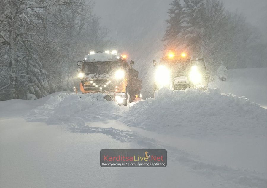 Για την αντιμετώπιση των επιπτώσεων της χιονόπτωσης στο οδικό δίκτυο κινητοποιήθηκε μεγάλος αριθμός μηχανημάτων. Συγκεκριμένα, 45 οχήματα της Περιφερειακής Ενότητας Καρδίτσας, καθώς και μισθωμένα μέσα, πραγματοποίησαν εκχιονισμούς και ρίψεις αλατιού στο εθνικό και επαρχιακό δίκτυο. Παράλληλα, οι δήμοι του νομού ανέλαβαν τον καθαρισμό και τη διαχείριση της κατάστασης στο τοπικό οδικό τους δίκτυο, με παρεμβάσεις όπου κρίθηκε απαραίτητο και οι οποίες θα σινεχιστούν και την Πέμπτη.