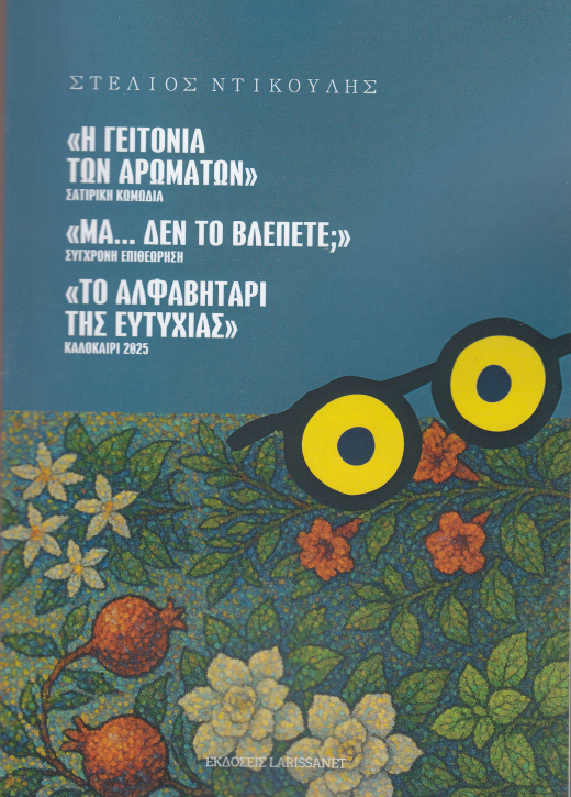 To νέο, όγδοο, βιβλίο του Λαρισαίου συγγραφέα, ηθοποιού και σκηνοθέτη Στέλιου Ντικούλη, παρουσιάζεται την Τρίτη 27 Ιανουαρίου 2026 στις 20.00 μμ. στο Θέατρο Τεχνών Λάρισας. Περιλαμβάνει την σατιρική κωμωδία με τίτλο «Η γειτονιά των αρωμάτων», ένα θεατρικό έργο, για την τελευταία γειτονιά με όμορφα λουλούδια -αγιόκλημα, γιασεμί, ροδιές κ.α.-, που ξέφυγε της ανοικοδόμησης και με πολλά στοιχεία ρομαντισμού και κωμωδίας. Την επιθεώρηση με τίτλο «Μα…. δεν το βλέπετε;», που σατιρίζει σχεδόν όλα τα θέματα της σύγχρονης κοινωνικής πραγματικότητας και παίχτηκε τον προηγούμενο χειμώνα και το περασμένο καλοκαίρι σε περιοδεία με μεγάλη επιτυχία, από το Θέατρο Τεχνών Λάρισας, το «Αλφαβητάρι της ευτυχίας», ένα αλφαβητάρι με τις απόψεις του συγγραφέα για τα σπουδαία θέματα της ζωής καθώς και συνεντεύξεις και άρθρα του Λαρισαίου συγγραφέα.