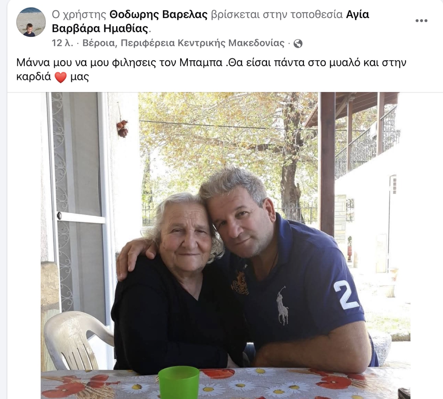 Δύσκολες ώρες για τον γνωστό επιχειρηματία νυχτερινών κέντρων διασκέδασης της Λάρισας, τον Θοδωρή Βαρελά, ο οποίος «έχασε» την αγαπημένη του μητέρα.
