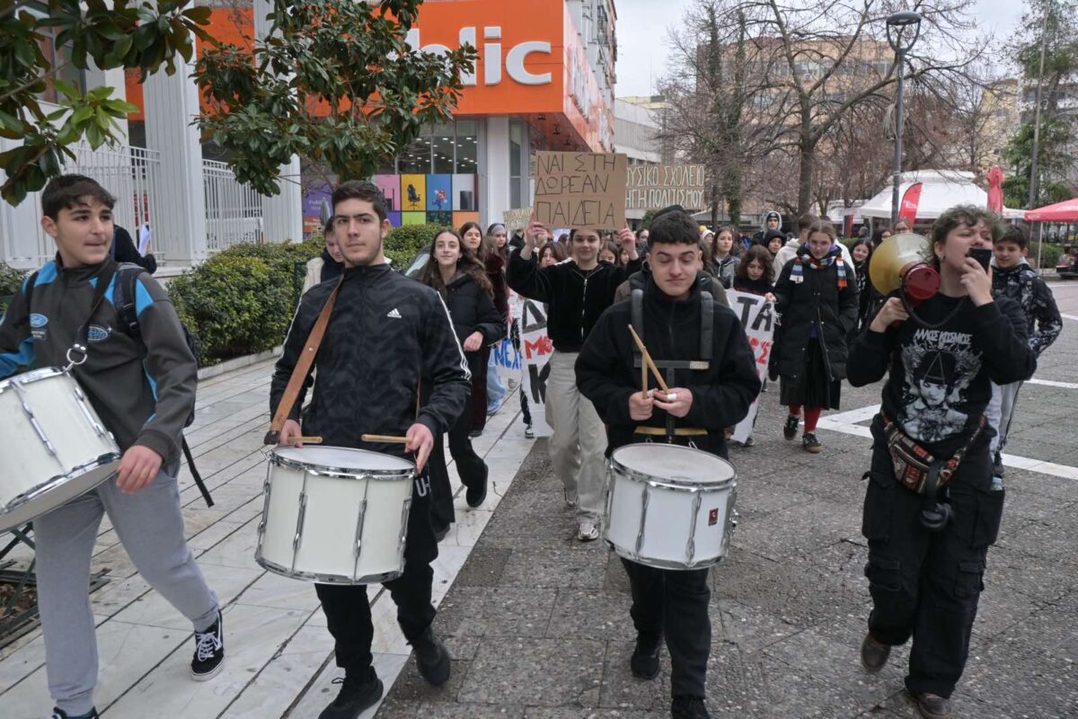 Ξεσήκωσε το κέντρο της Λάρισας με τύμπανα το διαμαρτυρόμενο Μουσικό Σχολείο (φωτό – βίντεο)