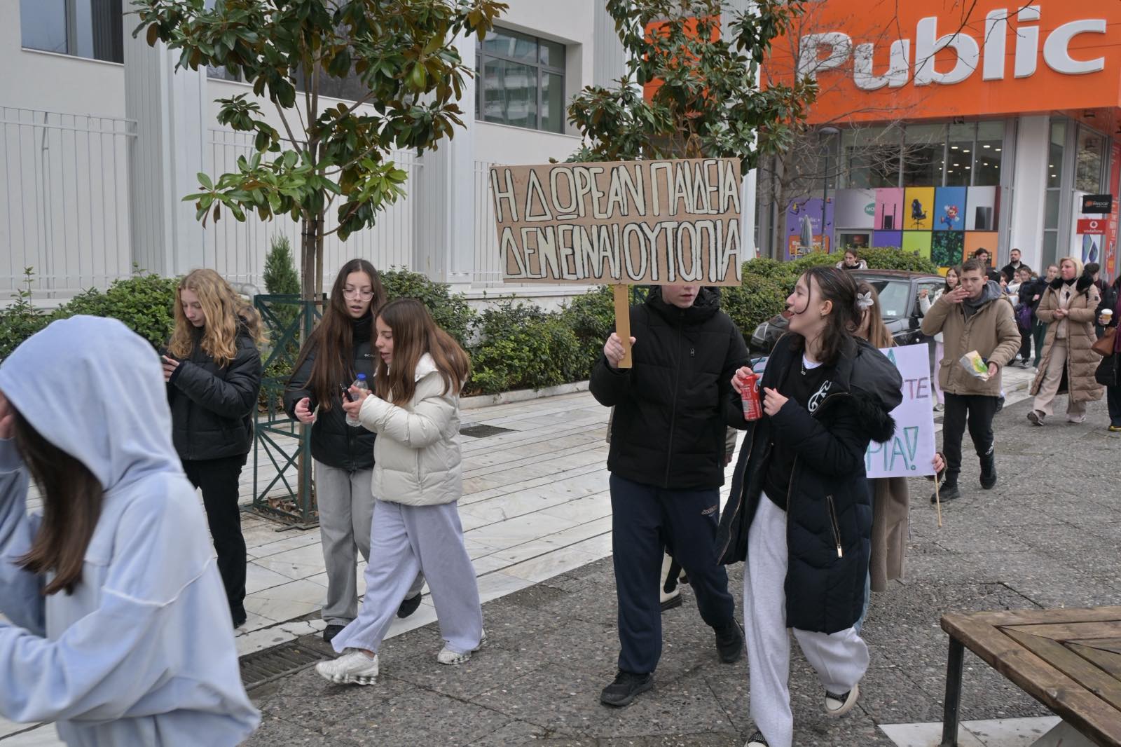 Σήμερα το μεσημέρι της Παρασκευής, βγήκαν στους δρόμους με τη συνοδεία καθηγητών και γονιών και διεκδίκησαν με τον τρόπο τους τα αιτήματα τους, ενώ στη συνέχεια πραγματοποίησαν διαδοχικές συναντήσεις, στην Περιφέρεια Θεσσαλίας, όπου τους υποδέχθηκε η αντιπεριφερειάρχης Π.Ε. Λάρισας, Μαρία Γαλλιού και ο αντιπεριφερειάρχης Παιδείας, Βασίλης Σίμος και στο Δημαρχείο όπου μίλησαν με τον Δήμαρχο Λαρισαίων, Θανάση Μαμάκο και τον Αντιδήμαρχο Παιδείας, Χρήστο Αγορίτσα.