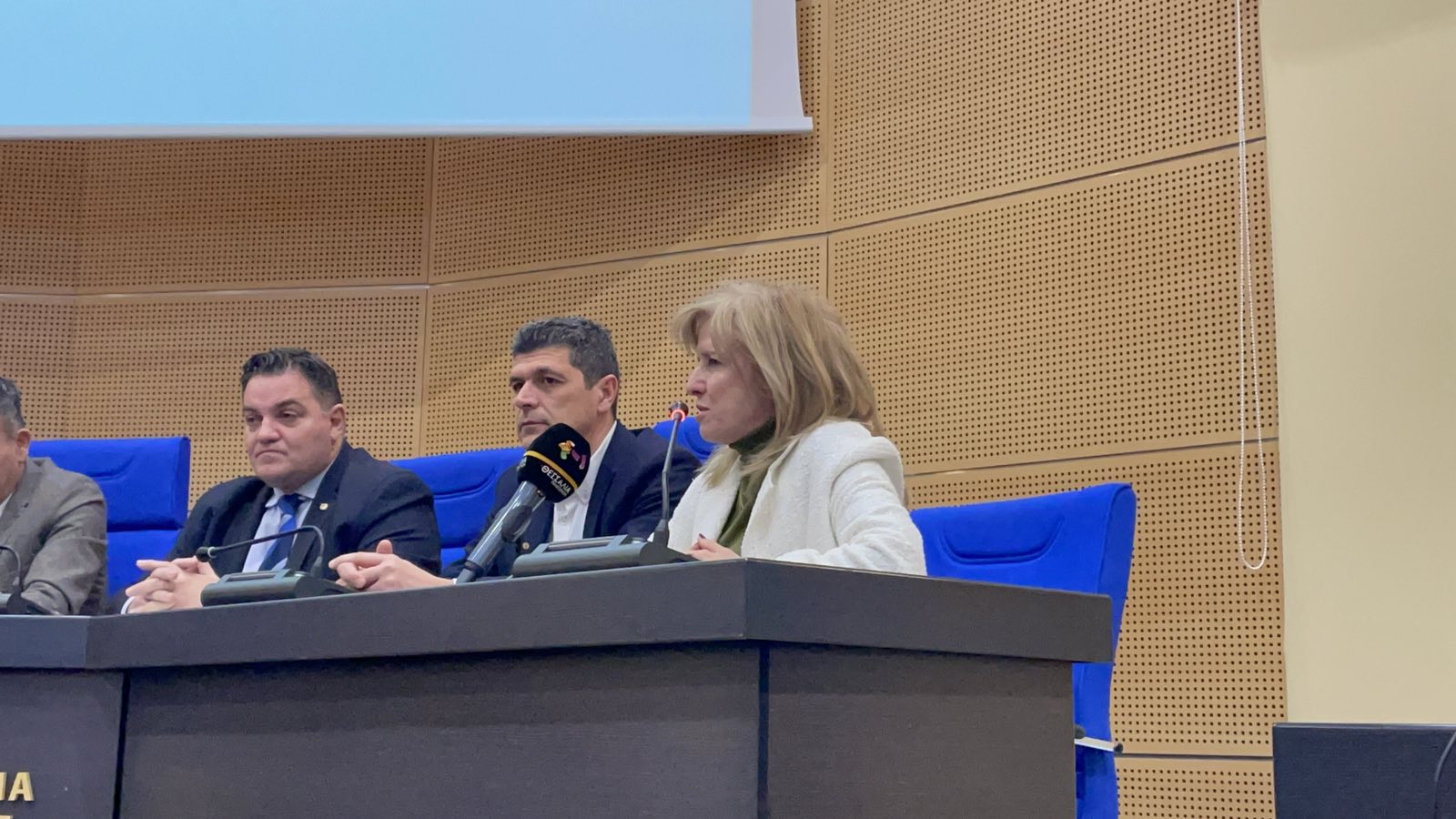 Στη συνέντευξη Τύπου έδωσαν το παρών η Αντιπεριφερειάρχης Π.Ε. Λάρισας κα Μαρία Γαλλιού, ο Αναπληρωτής Περιφερειάρχης κος Μπαρμπούτης Κων/νος, ο Αντιπεριφερειάρχης Παιδείας κ. Βασίλης Σίμος, ο Αντιδήμαρχος Τεχνικών Υπηρεσιών κ. Χρήστος Τερζούδης και ο Αντιδήμαρχος Παιδείας Χρήστος Αγορίτσας.