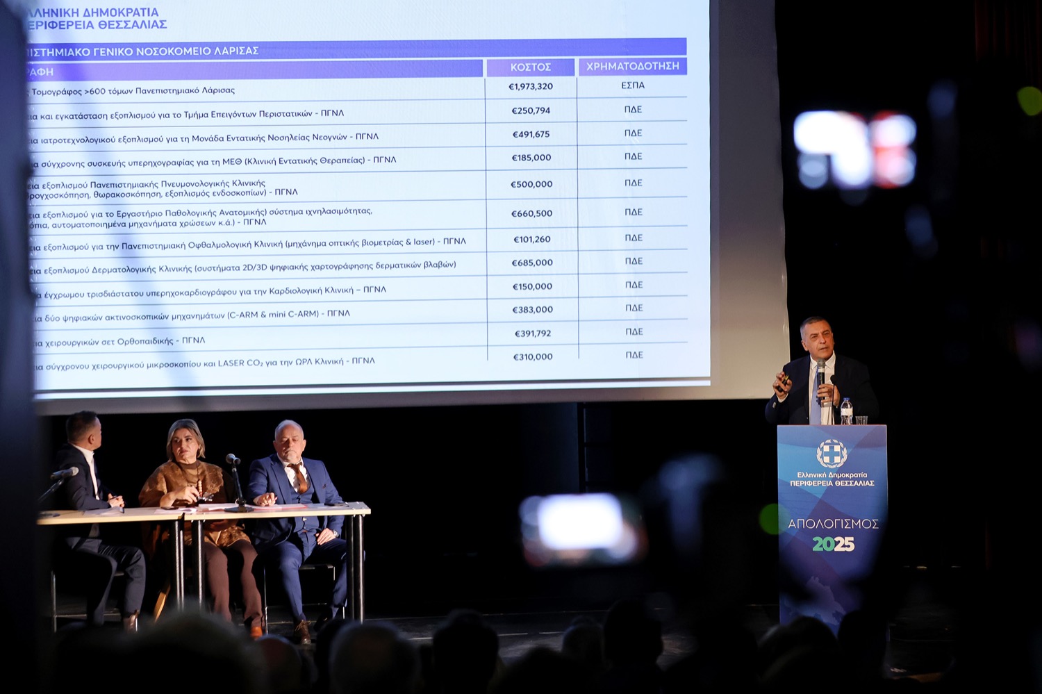 Αναφερόμενος στα έργα που δρομολογούνται το 2026 αναφέρθηκε στα νέα κλειστά κολυμβητήρια (6 + 3), στα κλειστά γυμναστήρια, στο Γηροκομείο Λάρισας, στην νέα πτέρυγα του ΓΝΛ που ξεκίνησε.