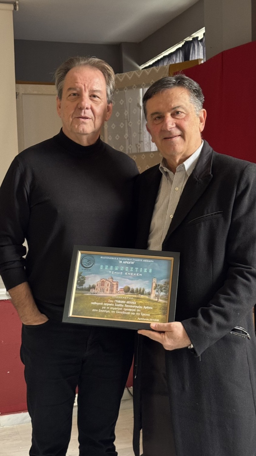 καθηγητή Φαρμακολογίας της Ιατρικής Σχολής του Πανεπιστημίου Κρήτης και Ερευνητή του Ινστιτούτου Μοριακής Βιολογίας & Βιοτεχνολογίας του Ιδρύματος Τεχνολογίας και Έρευνας κ. Γραβάνη Αχιλλέα και Γενική Συνέλευση – Εκλογές του Φιλανθρωπικού & Πολιτιστικού Συλλόγου Αμπελώνα ” Η ΑΡΩΓΗ”.
